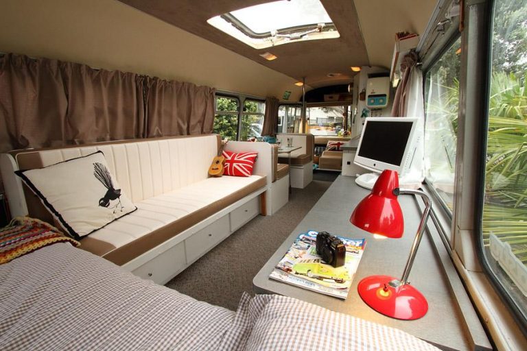 These homes are absolutely beautiful, many being quite modern with a rustic touch, using natural wood, rope, exposed metal frames, and the like in their designs. Many of these homes, given their size, are quite portable as well! Some clever solutions for moving these homes around are keeping them on a trailer, and hooking it up to a truck when ready to move, easy loading onto a trailer, or, actually building the home inside a large vehicle, like an old bus! (seen below)
