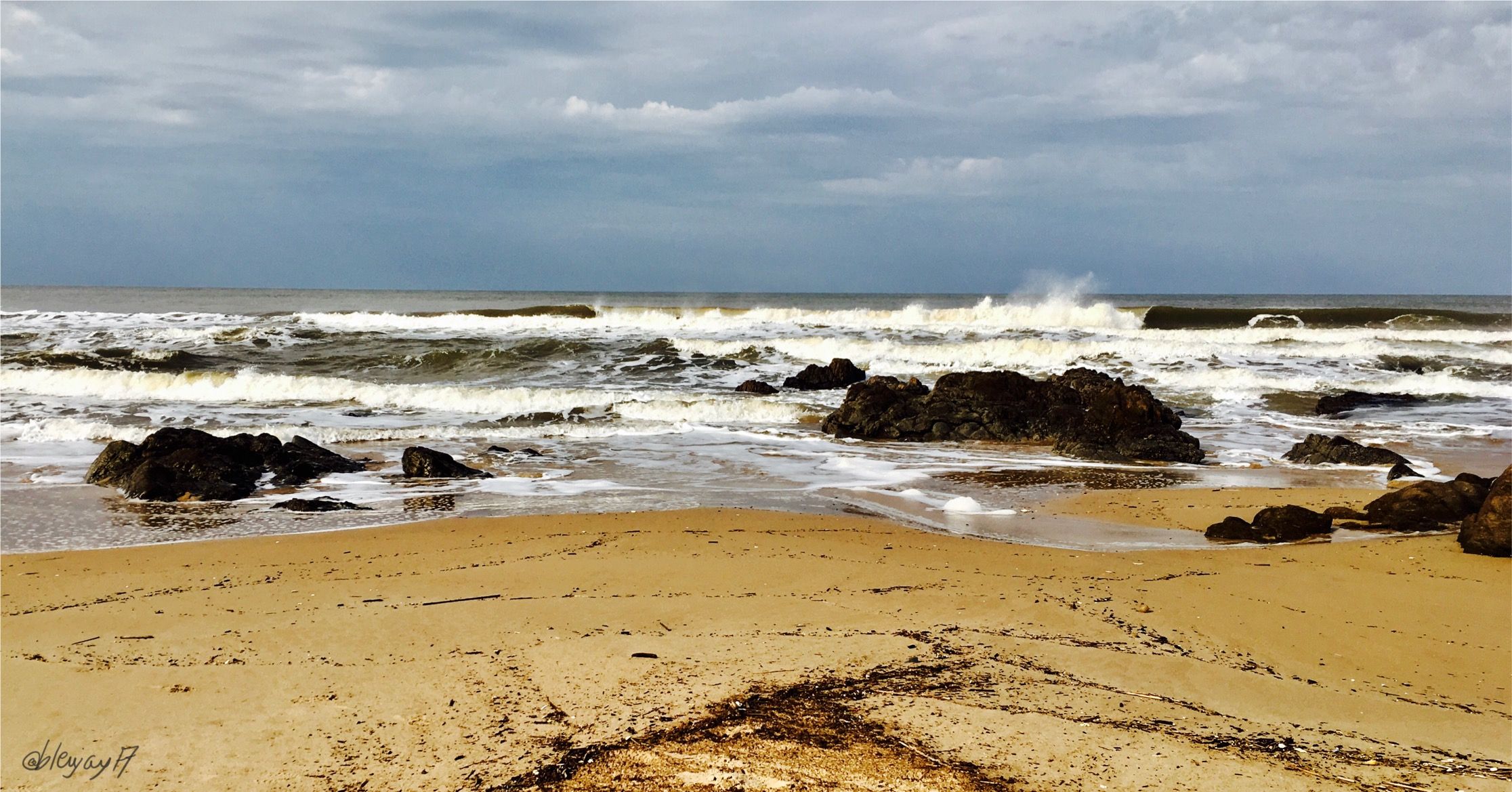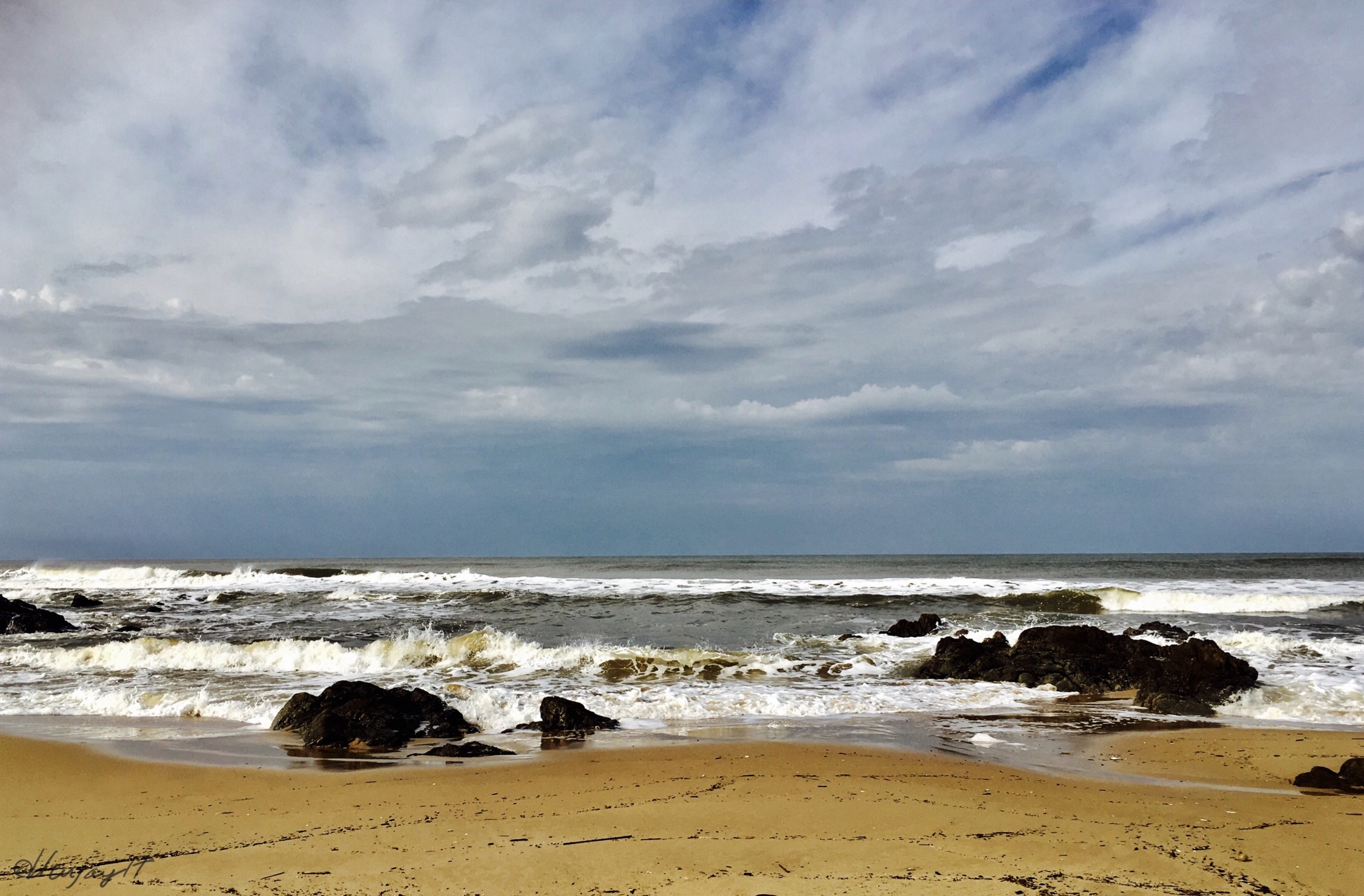 Beautiful beach with wonderful sky and clouds! Great shots of the waves and the rocks! Your black and white photos are perfect! It looks really peaceful.