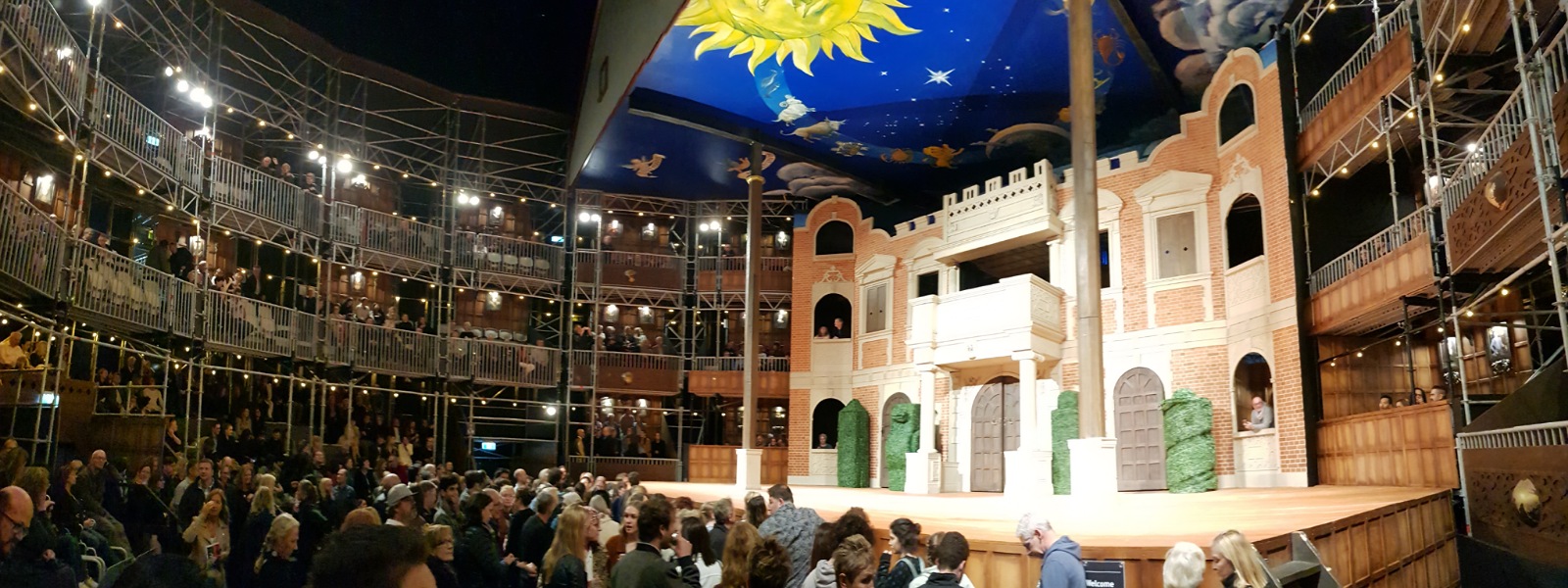 This is a very close replica to the original theatre Shakespeare out on his plays in the 1600s, so it was quite an experience being sonclose to the stage from wherever you were sitting, or standing. We got seats in the second row, right at the corner of the stage. This was our view of the whole theatre.