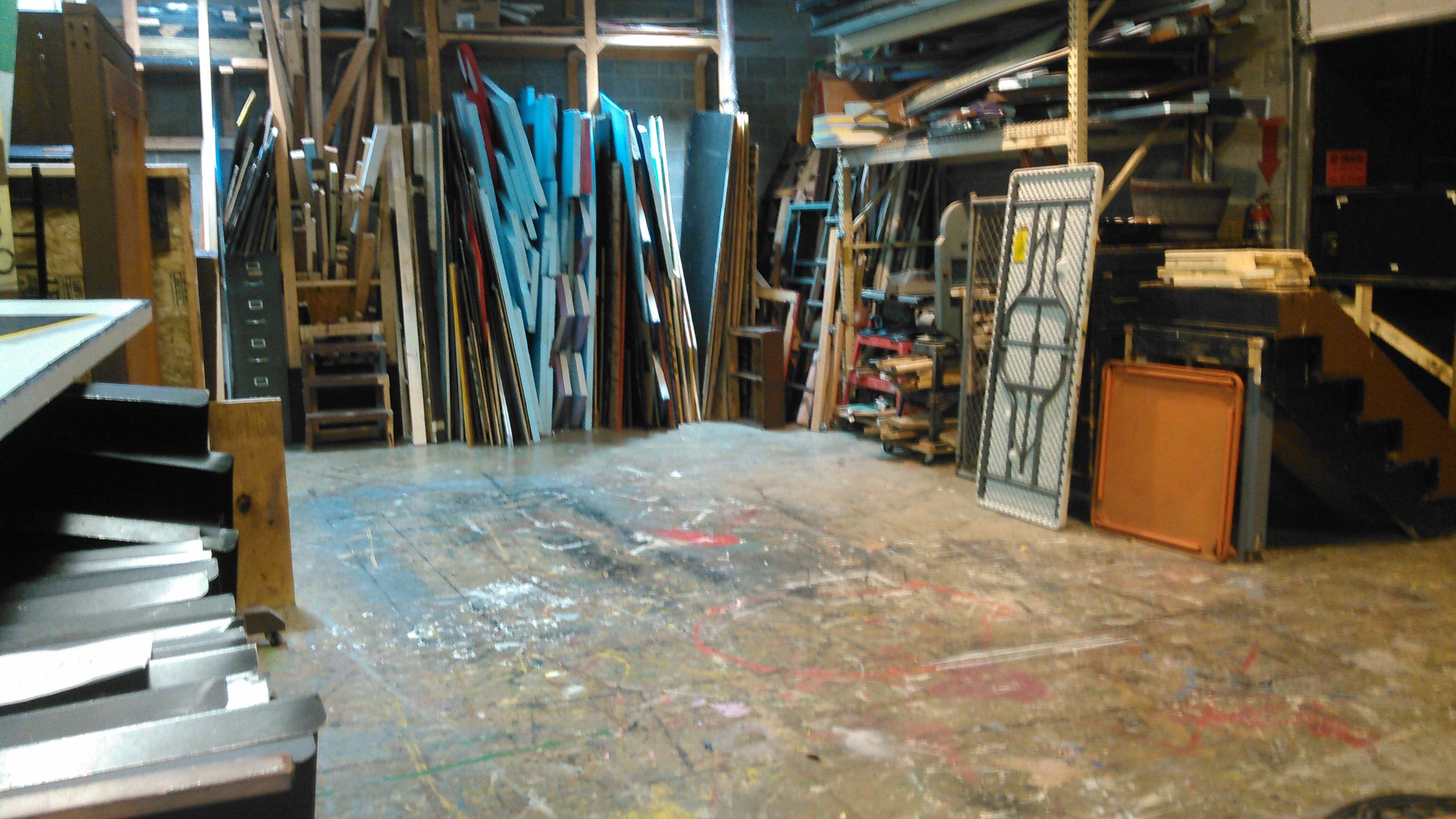 I went to painstaking trouble to make this area easily organizable with hooks and bolts to put drying brushes and rollers, but they were so far behind on this production, they were painting up until an hour before they opened the show, so I gave them a pass for their opening night, which was a Friday, but I came in to find this mess on a monday morning. They had just left it like this all weekend.