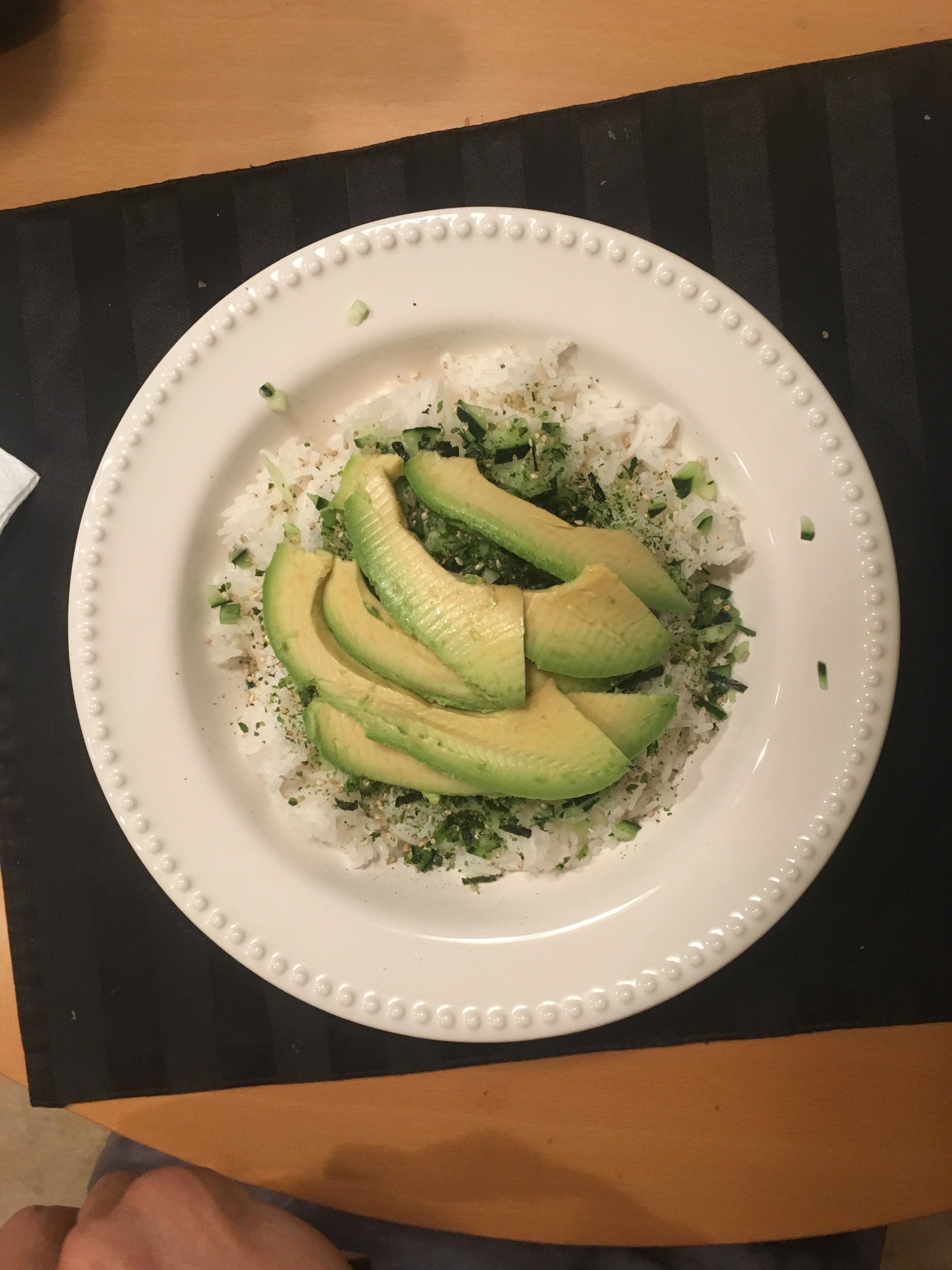 After a fun, long day of adventuring out and about, we decided to come home and make a nice dinner at home and relax. For dinner tonight we made one of our favorite recipes, Sushi Bowls. Sushi Bowls are one of our favorite dinners to have because we both love white rice and avocados. This dinner is super simple to make and light and fresh on your stomach. To make Sushi Bowls you need Thai Jasmine Rice, avocado, cucumber, furikake and soy sauce.