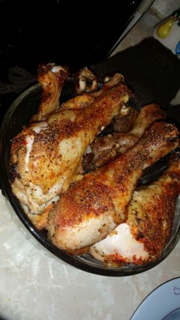 - Bake at 375° F for half an hour. Turn drumsticks over and add more garlic powder, pepper and salt (same as before). Top with the parsley.