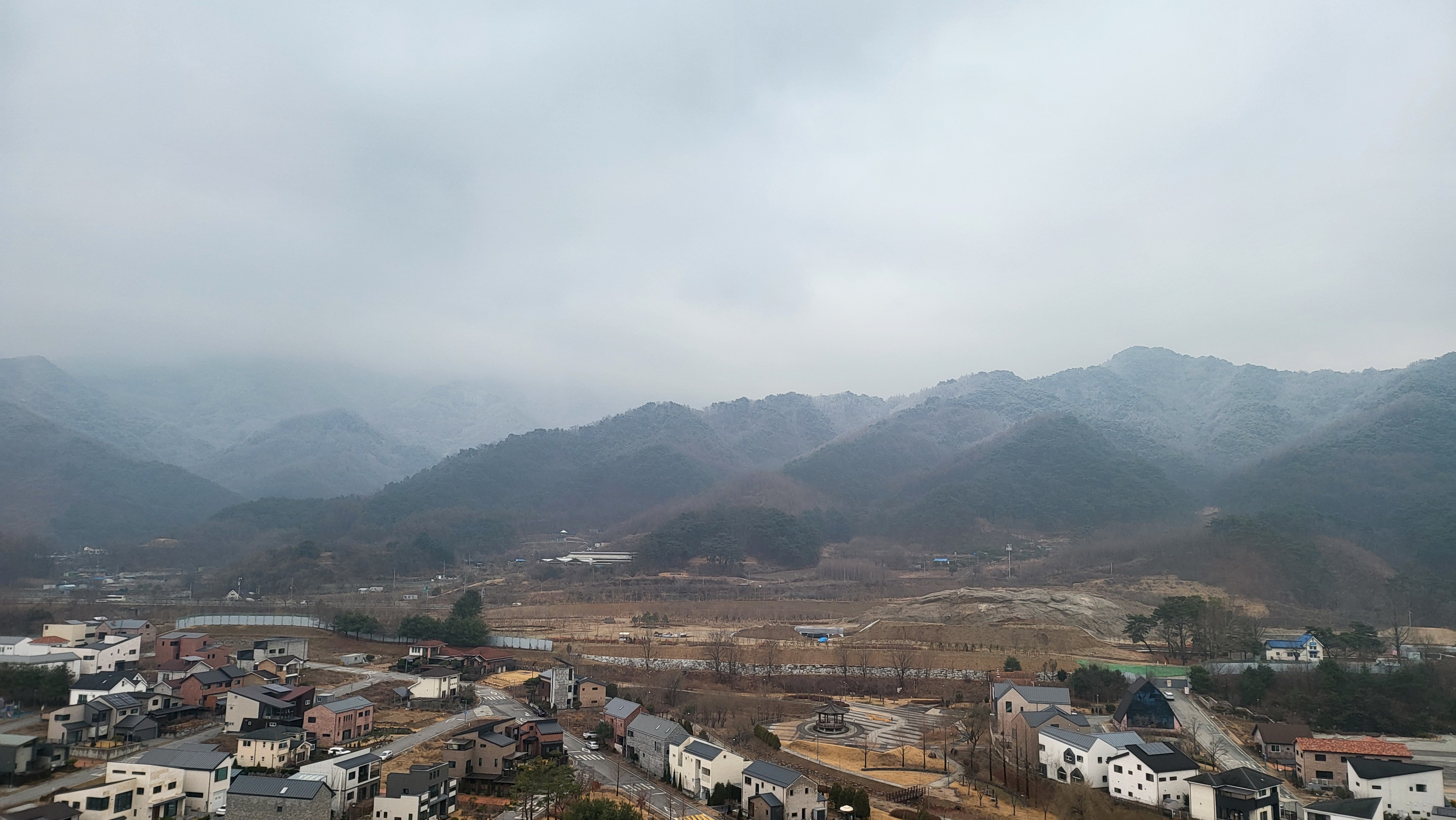 오후에 컴퓨터를 너무 오래 쳐다보고 있었더니 눈이 침침해서 창가 커튼을 열어봤더니... 멋진 풍경이 눈앞에 펼쳐졌다. 멕시코 사막에서 오래 살다가 와서 그런지 한국의 풍경은 한폭의 그림처럼 느껴진다. 한국이 참 아름답다.