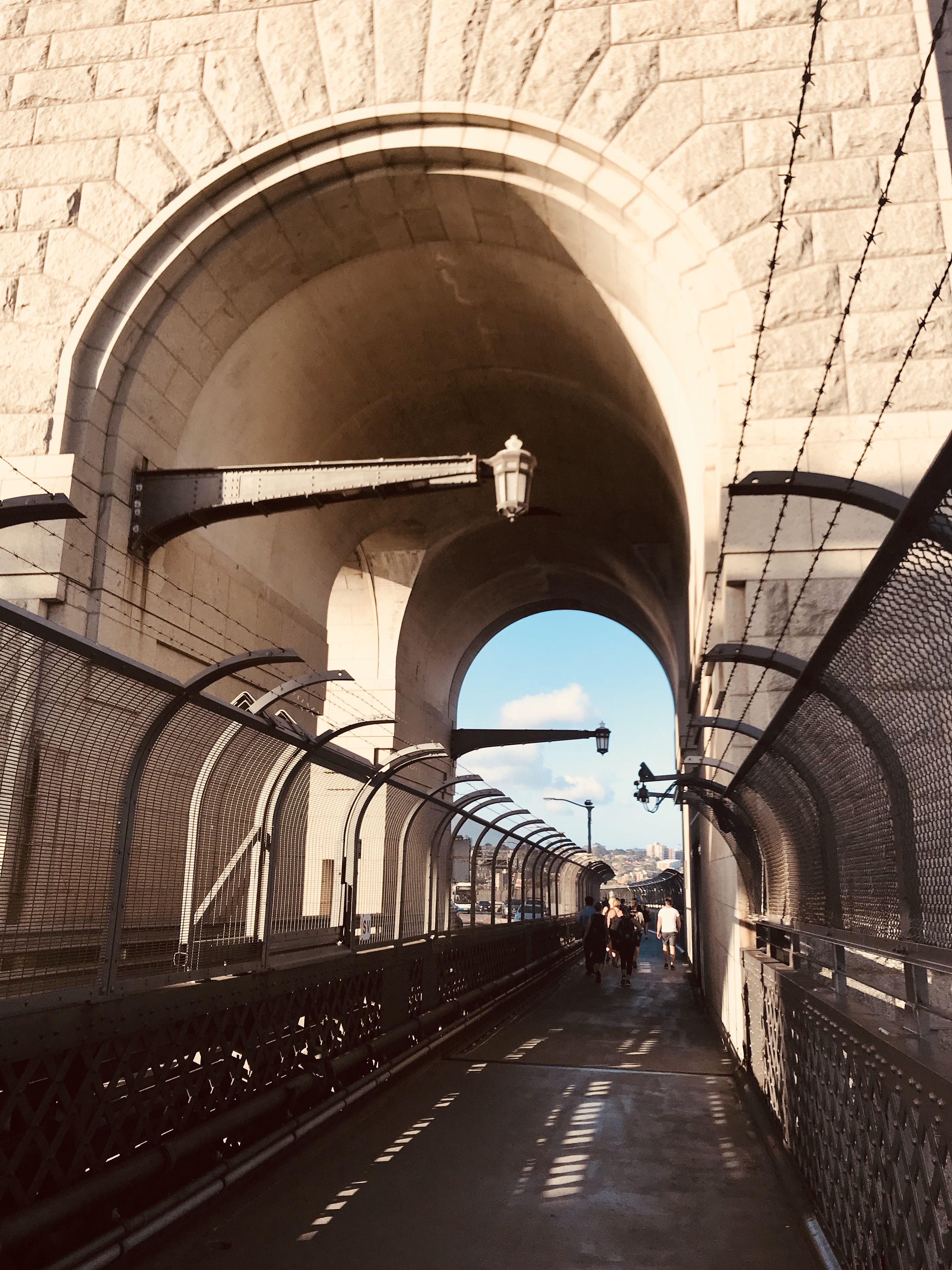 It's a special experience walking across the bridge. That is if you don't mind cars and buses and taxis zooming by. However, the beautiful ocean view on the other side makes it all so worthwhile!