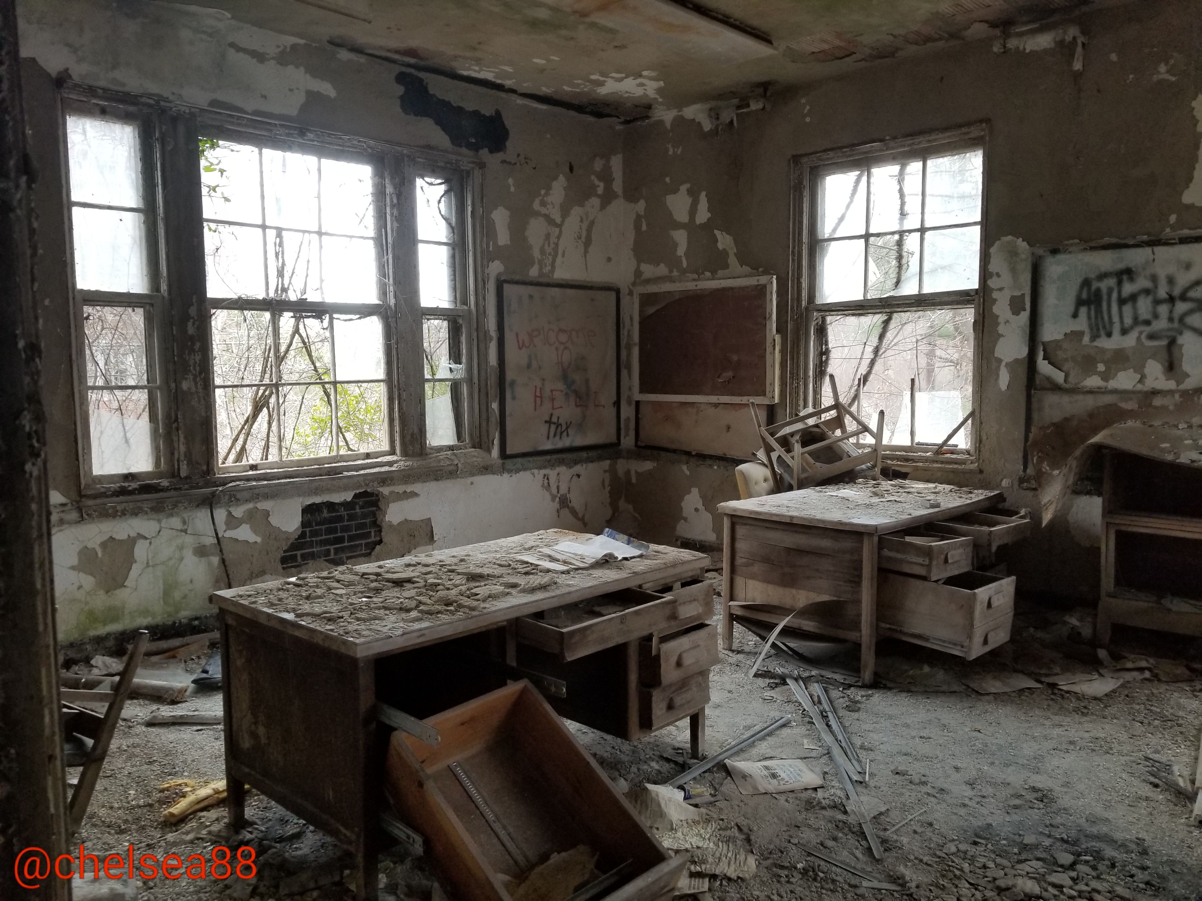 I have many photos from within curley hall and the adjacent building. I was pretty astonished to see actual patient records and what would now be considered protected health information lying about. You will see some of that in the following photos. Additionally, you'll see that a LOT of stuff still remains in these buildings. Following the judge ordered shutdown of Forest Haven, one would wonder why these documents weren't either destroyed or relocated. Maybe becayse the residents of Forest Haven "didn't matter." Not only were the truly mentally disabled sent there, so were those with mild cases of dyslexia or other functioning but mildly cognitively impaired. The environment caused the mildly impaired to become worse. Eventually drug addicts and other societal rejects ended up stuck at forest haven. This wall "art" well sums up the general heavy emotional feeling in the air at Forest Haven Asylum...