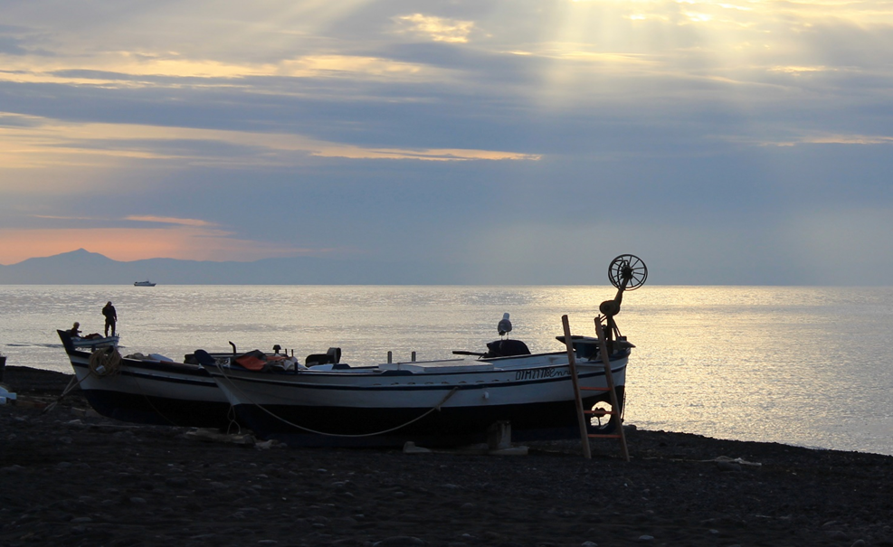 Enjoy a walk at dawn, between the colorful boats and the black pebbles of volcanic lava.