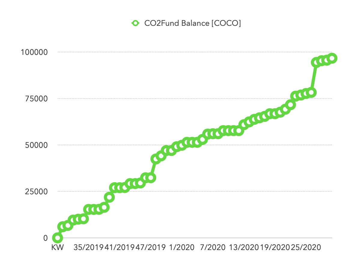 Current number of COCO transferred to co2fund: 96665.27932 COCO