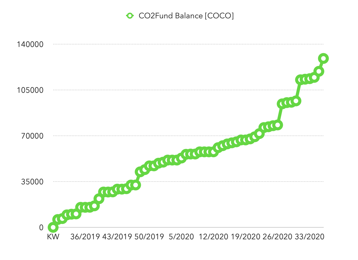 Current number of COCO transferred to co2fund: 95618.77932 COCO