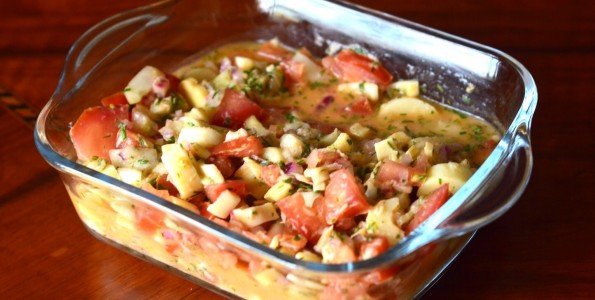 Ideal para acompañar las comida como arroz con pollo, carne o chuleta. Esta ensalada también llamada y conocida como ceviche usa como ingrediente principal el corazón del palmito que es un vegetal que se extrae de la palma de coco. Si te gusto atreve a prepararla!