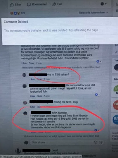 Update: The National Broadcaster (NRK) are deleting messages in real-time about the case [9]. At the sametime they post an article about one right wing politician that have sent hardcore pictures to one 14 years old boy [10].