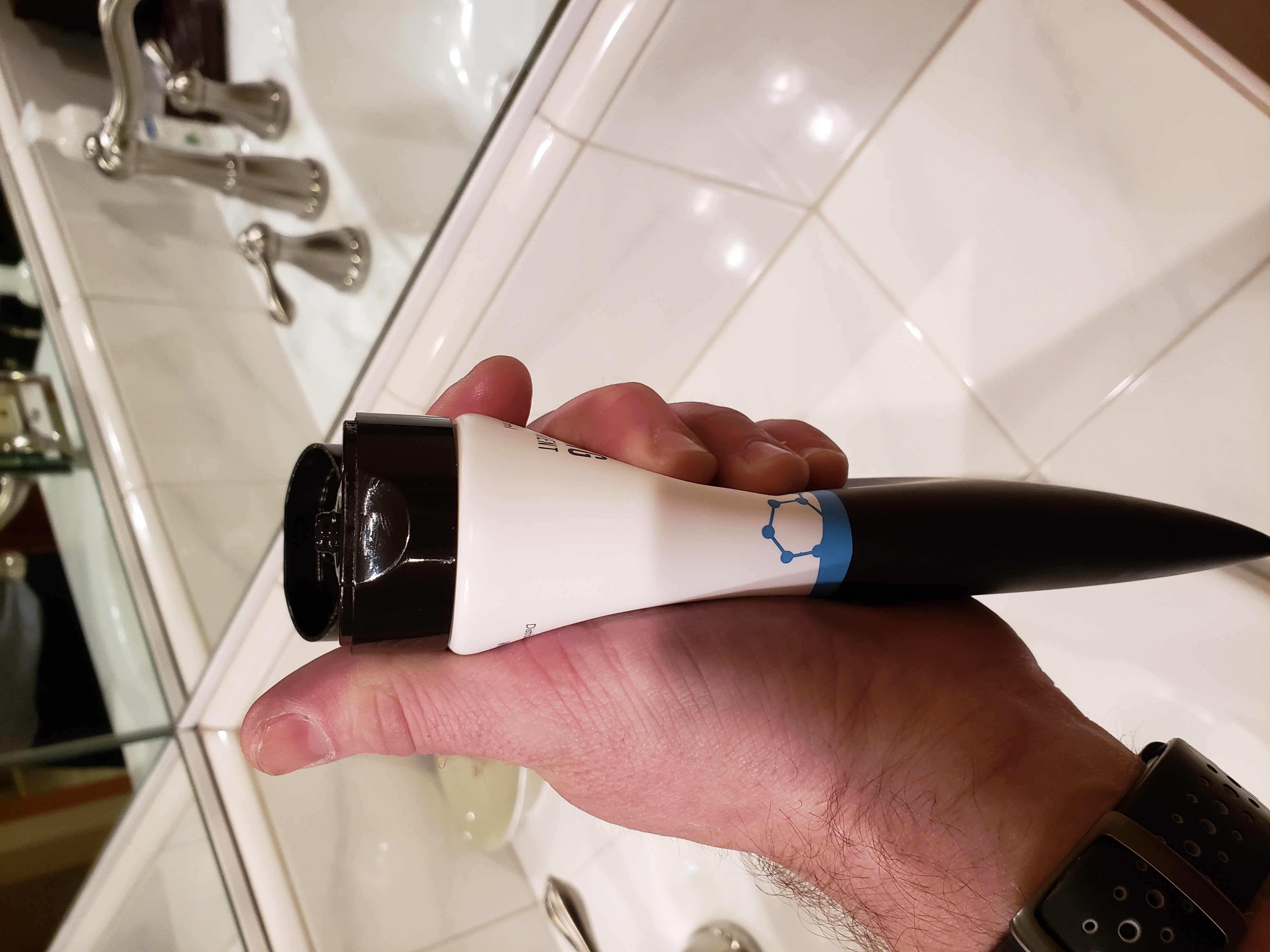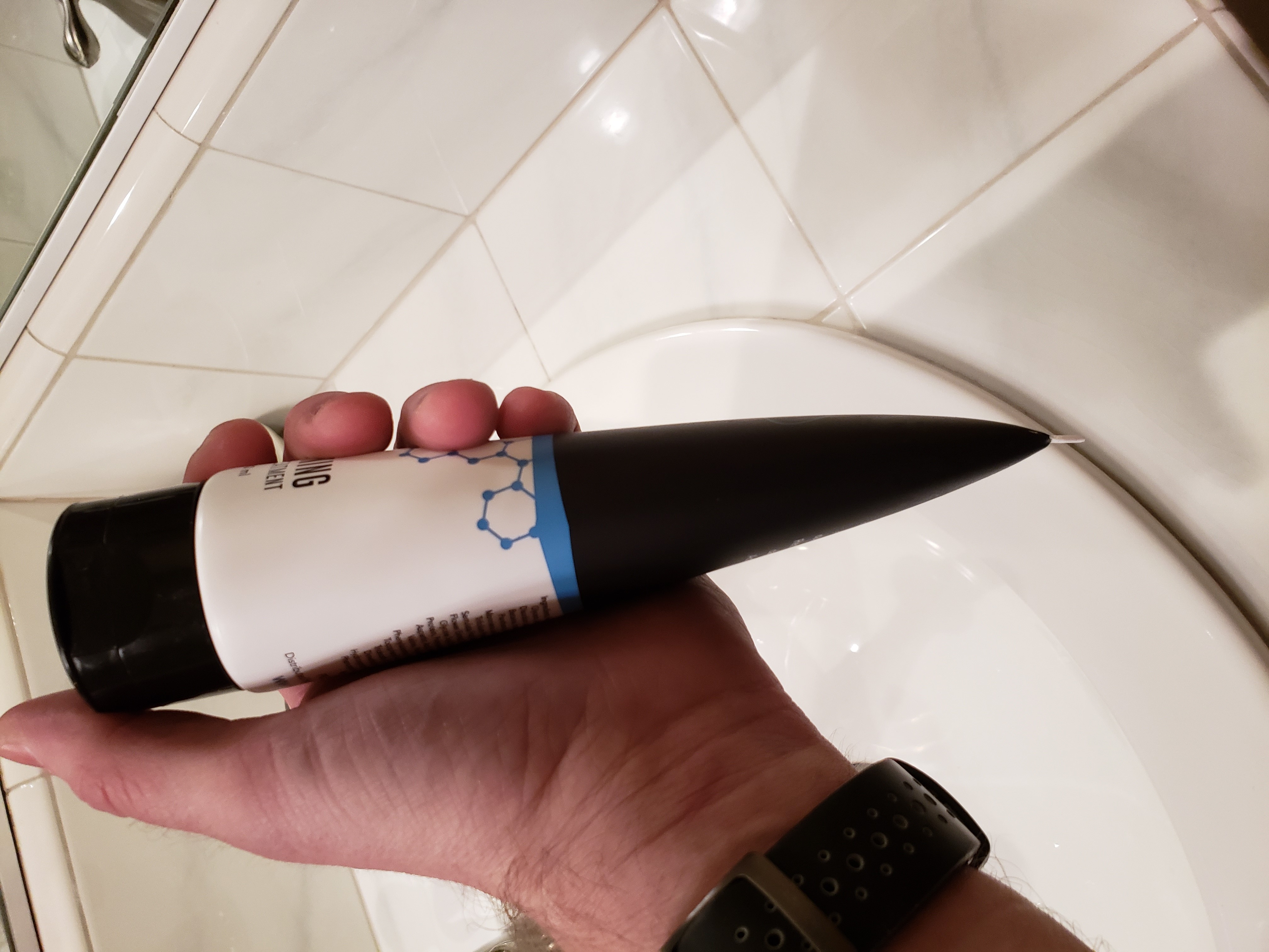 Pro tip 1: If you have trouble squeezing the air out without product coming out, give it a firm downwards shake... think the opposite of what you would do to get ketchup out of the opening of the jar.