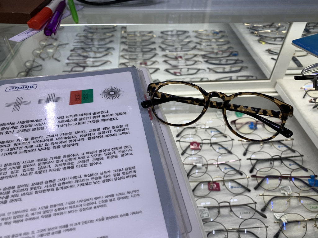 안경점에 들러 돋보기용으로 안경도 하나 맞췄다. 안경알은 그냥 평범한 거로 글자가 잘 보이는 용도로 선택했다.