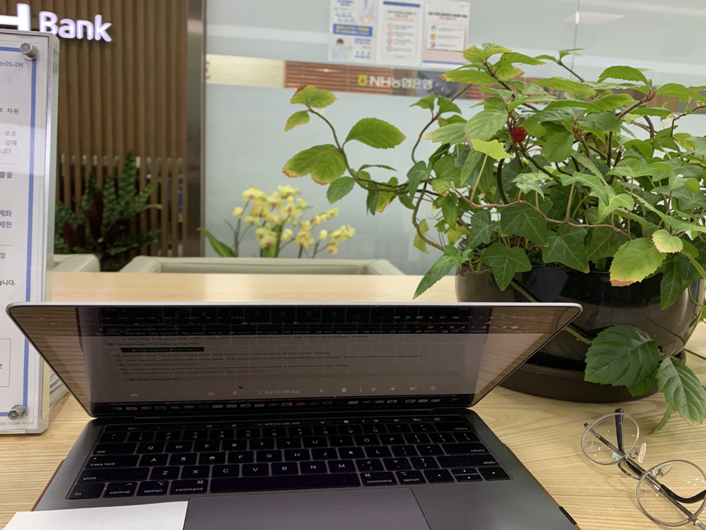 은행 업무를 마치고 은행 책상에 앉아 대학 내에서만 다운 받을 수 있는 몇 가지 소프트웨어를 다운 받았다.