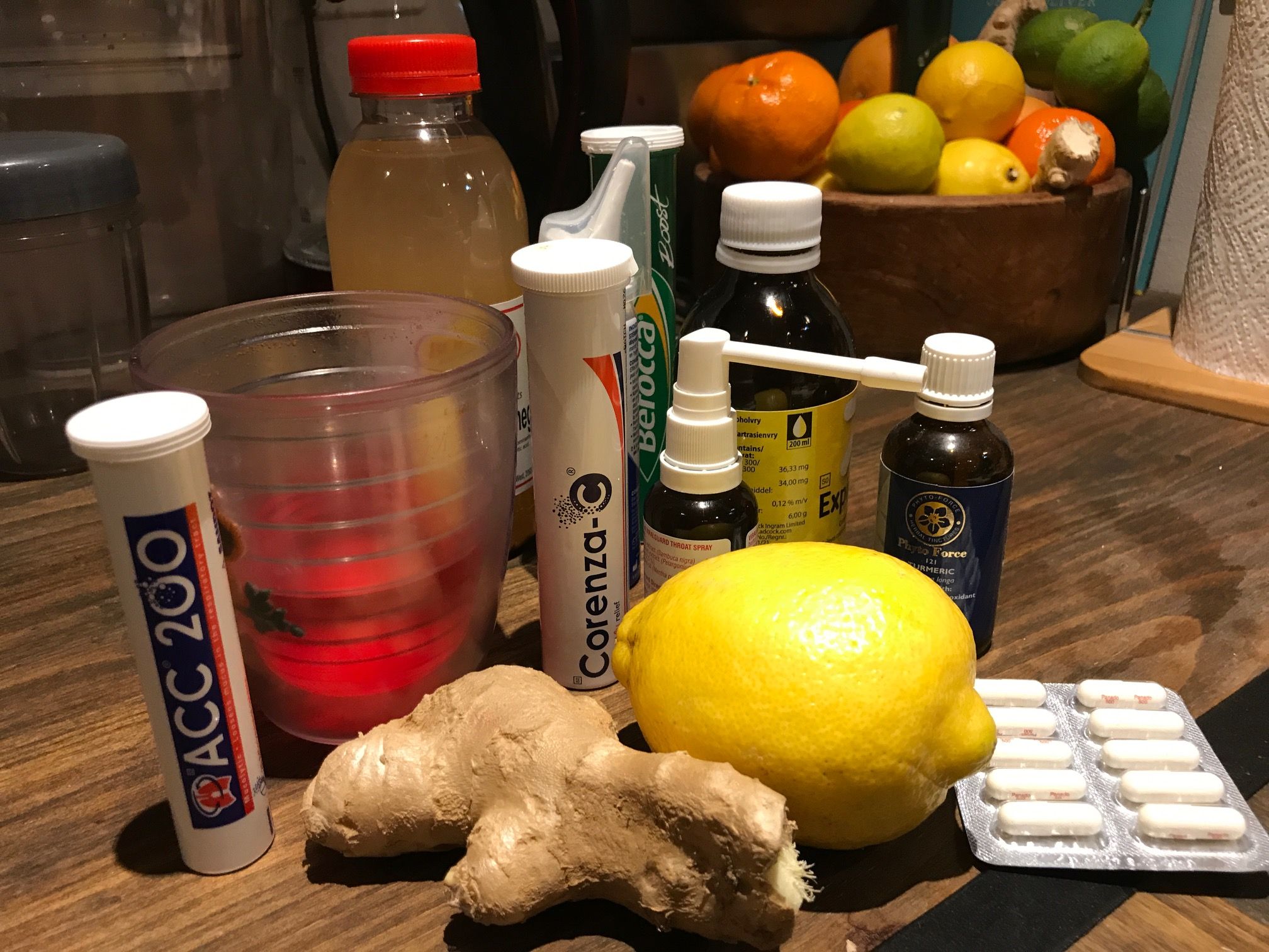 I'm usually not very good at taking medication. Sometimes however, you need to hit it on the head! So every 4 hours I had; Corenza, Berocca, ACC 200, Panado, Ibuproven, Cough Syrup, throat spray, nasal spray and my favourite - Medlemon hot toddies!