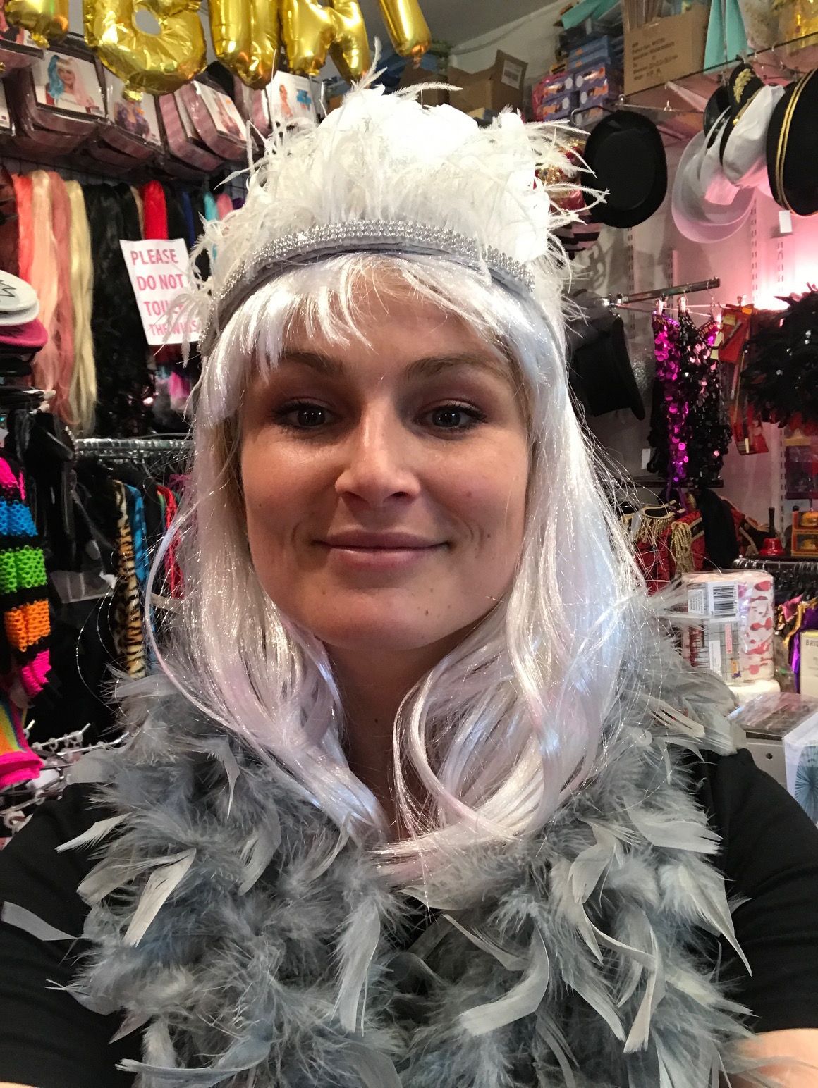 We managed to find pretty much everything we needed. A wig, feather boas, glitter and gloves!