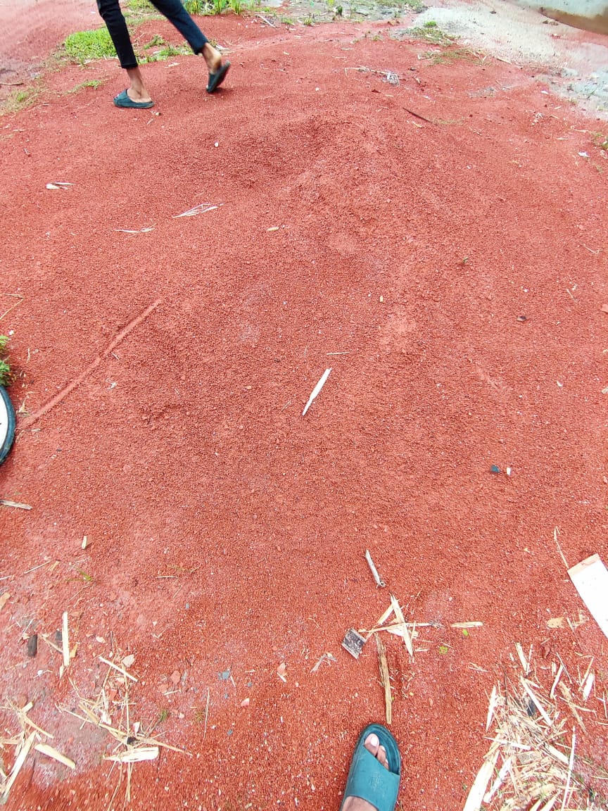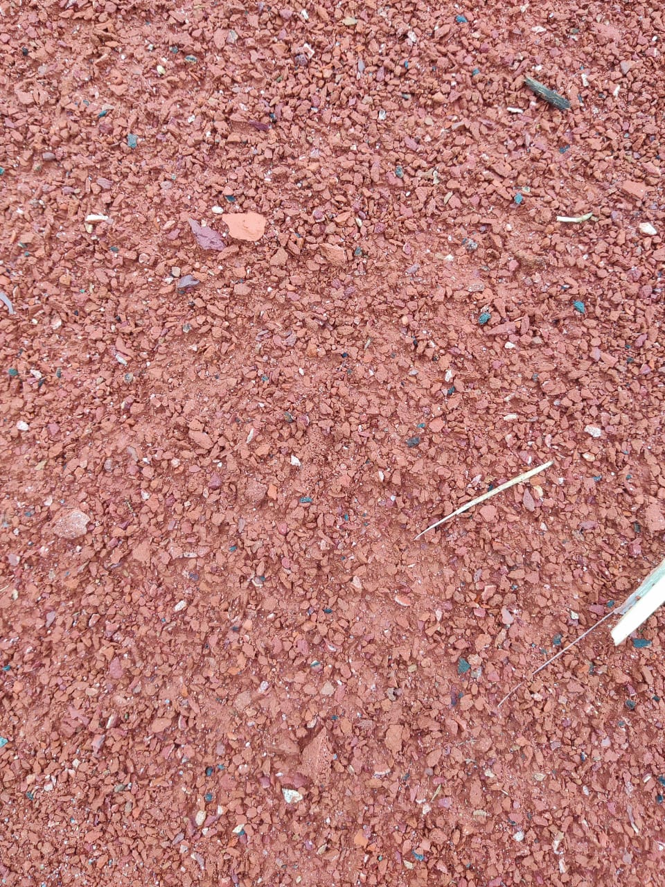 Brick chips have been kept here to be used, and that is why they have been placed. When mixed with the road, they become part of it, which is why these have been provided here. By putting them here, it has become quite useful. If needed, they will be taken from there after being broken down, and that is why these have been used for road work