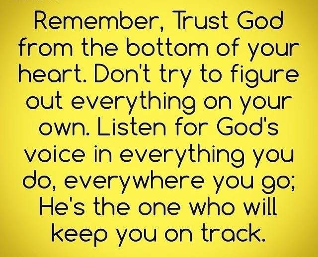 Remember, Trust God from the bottom of your heart. Don't try to figure out everything on your own. Listen for God's voice in everything you do, everywhere you go; He is the one who will keep you on the track.