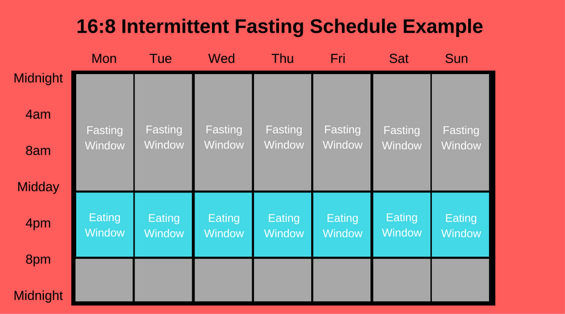 This method of Intermittent Fasting is called the 16:8 Fast (16 hours of fasting and 8 hours of feeding). There are other ways that one can participate in IF such as the 5:2 where one eats a very calorie restrictive diet for two nonconsecutive days during the week. There is also the Eat-Stop-Eat method. This basically means that you skip two meals, say lunch and dinner, and you don’t eat again until breakfast (or break fast…see what I did there) the next day. That process is done two times within the week as well.