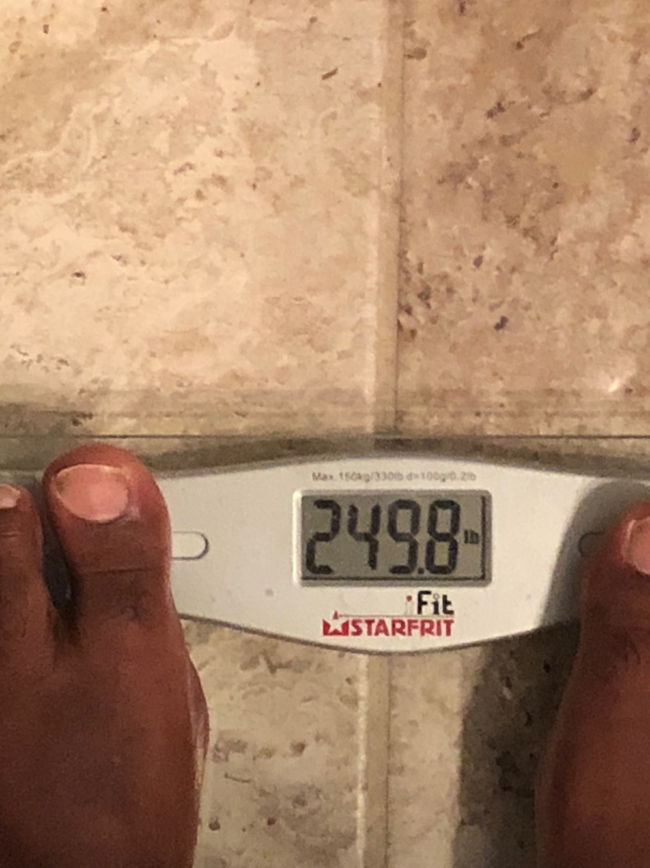 Hey brothers and sister Steemians! Last week I started a journey to better health and wellness (see the horribly produced video here https://steemit.com/dtube/@downrighthustle/nlw4904e ...my bad!). To spare yourself from watching the video, my starting weight was 255 pounds/115.6 kilograms. As a part of this project, and for accountability purposes, I will be posting weekly weigh ins along this journey. It is really important to me that I keep doing this so I don’t get lazy and slack on my health goals PLUS I love the interaction so please comment.
