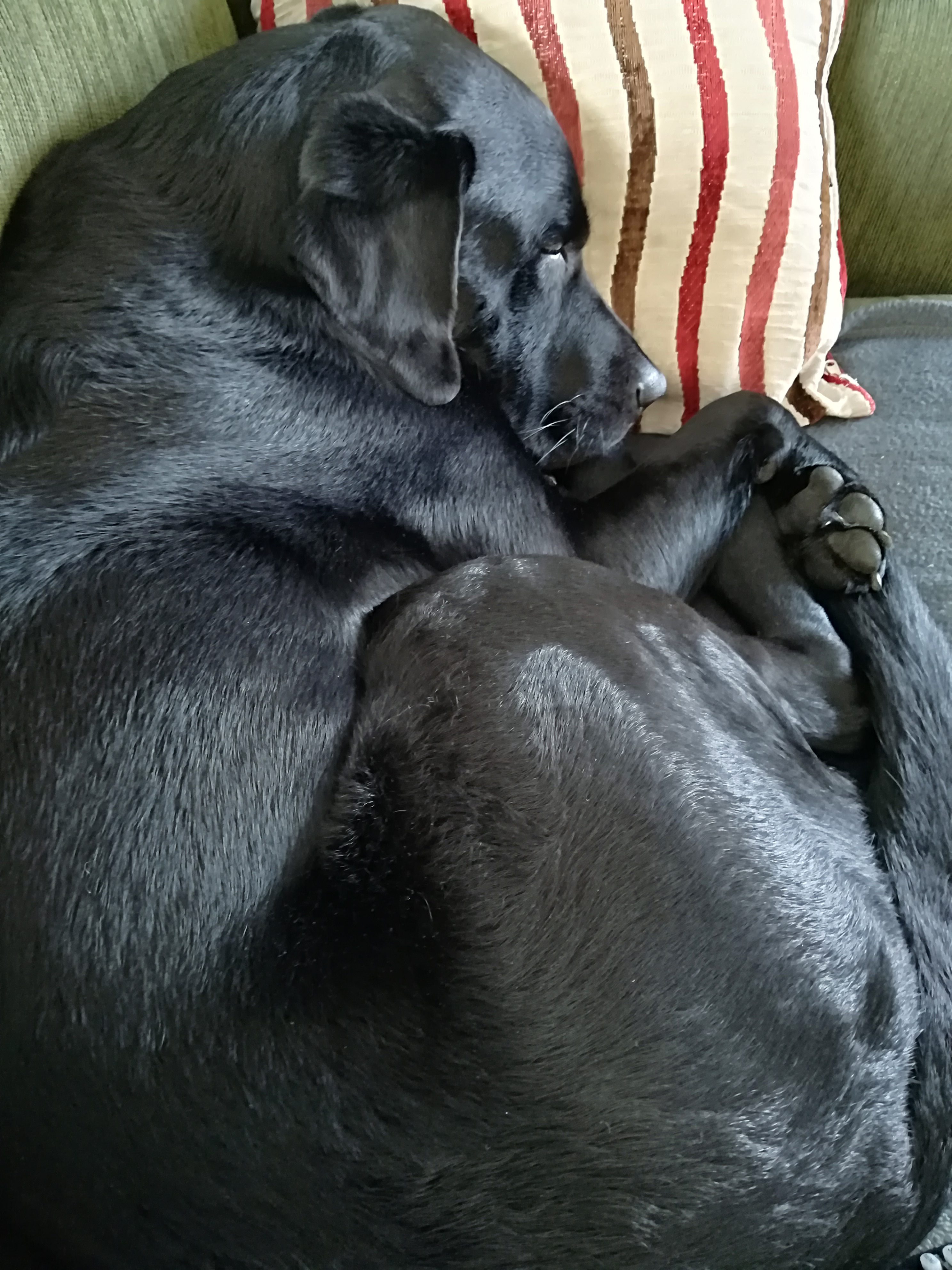 Charlie and his friend MollyNow Charlie is having a nap beside me on the couch. He's tired after playing all morning.