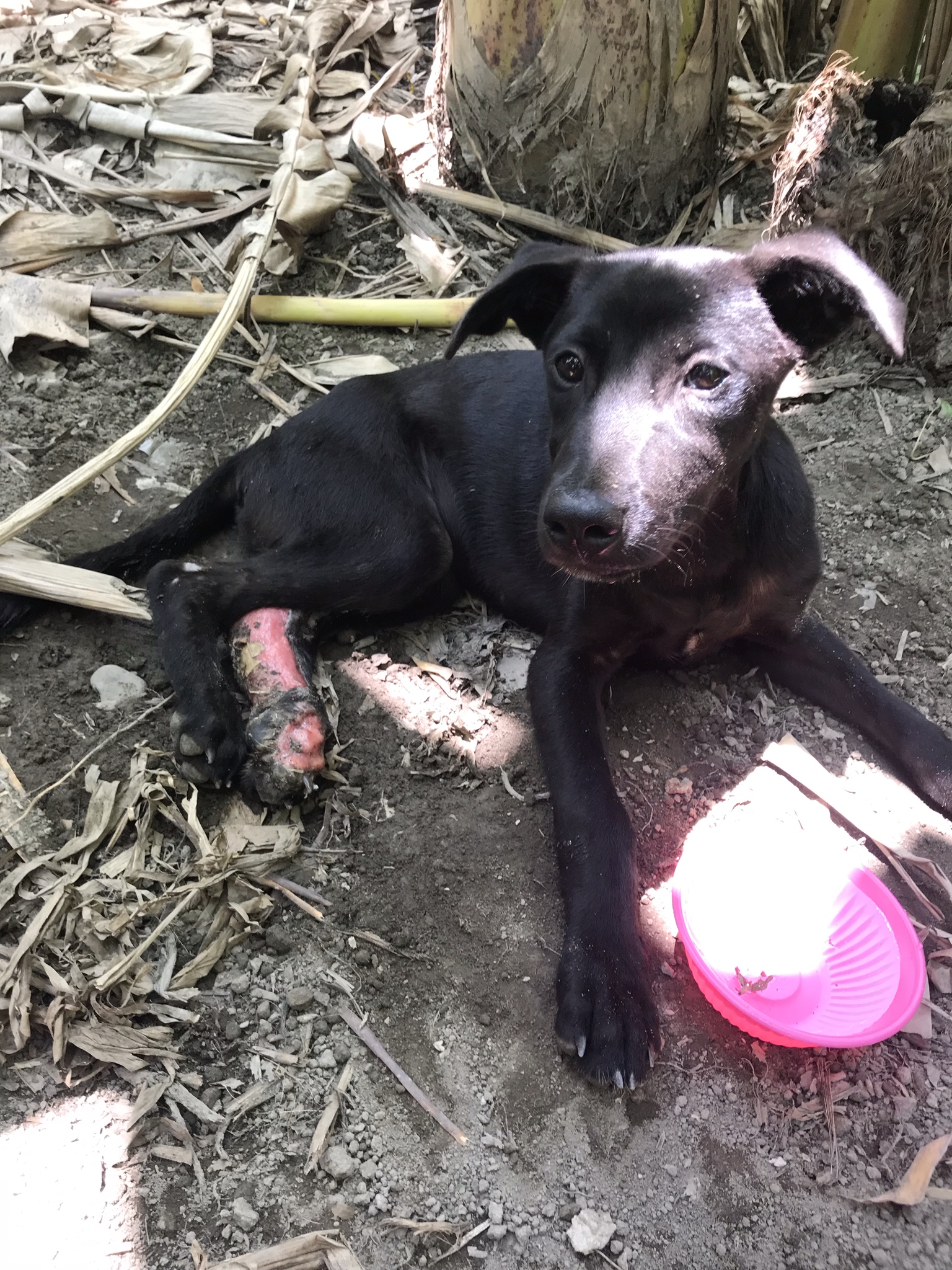 I heard from Sean the next day and he said the puppy was doing well. His name is Rocky (my kids got to pick the name) and the vet said that it was most likely from a scooter accident and that they would be able to save the leg. Rocky was placed on antibiotics and pain medication and once he is well enough, he will be vaccinated, microchipped and become available for adoption. How I wish we could take him, but we already have two rescues and our landlord thinks we have one. Oops....