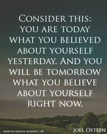 You are what you think about yourself. Therefore always believe the right and good things for your life. Believe the best for you.