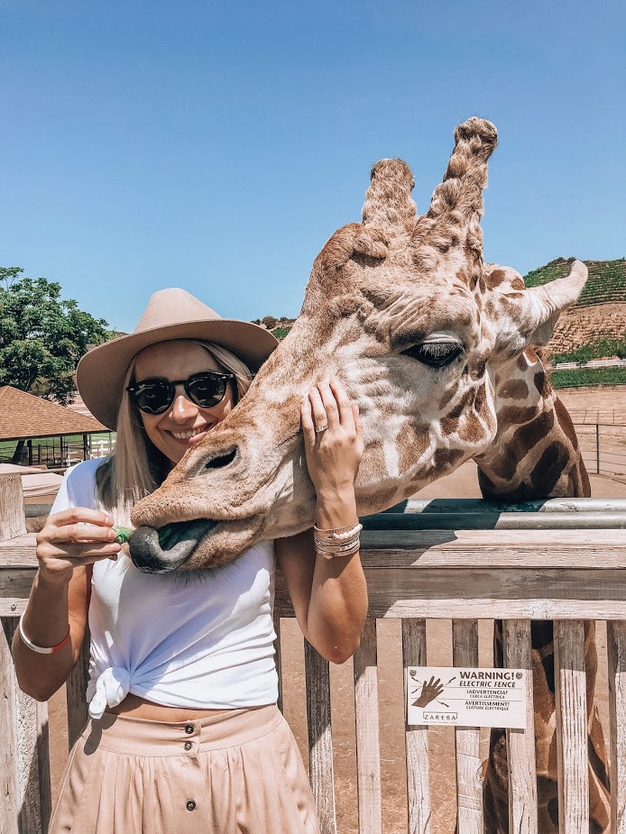 Last weekend we finally went on our Malibu Wine Safari adventure. The drive from San Diego was long and the LA traffic was a nightmare but the the tour and meeting Stanley the giraffe made it all worth it. You get to explore the 1,000 acre Saddle Rock Ranch and vineyard in a custom-built open-air Safari vehicle. The guide and driver team love to share some fun facts about the history of the vineyard, wines and animals which makes the experience super fun. If you're an animal lover you'll get to feed chopped carrots and lettuce to alpacas, zebras, donkeys and of course you'll get to meet and feed Stanley the giraffe. He's definitely the star of the show and he knows it. He's the sweetest, most loving creature and he's also a Hollywood superstar as he was featured in Hangover 3. He loves taking pictures (as long as you keep feeding him the lettuce:) There's also something for the wine lovers. You'll make stops along the way to take in the beautiful scenery and taste wines. Both white and red wines were delicious. I think my two favorite were NV Saddlerock Sparkling Rosé and Kendrick Llama, 2013 Cabernet Sauvignon . The whole experience is well worth it. Let's be honest, you get to relax, enjoy the scenery, drink wine and take selfies with the giraffe. It sounds pretty cool to me. They also have Airbnb on the property that sleeps 10 people, 5 wedding venues and Saddle Rock Ranch hosts dinners where you get to pick your vegetables from the local garden and some famous chef from downtown LA will cook it for you, as you drink the wine and watch the sunset. If you're in Malibu, definiately check out @MalibuWines