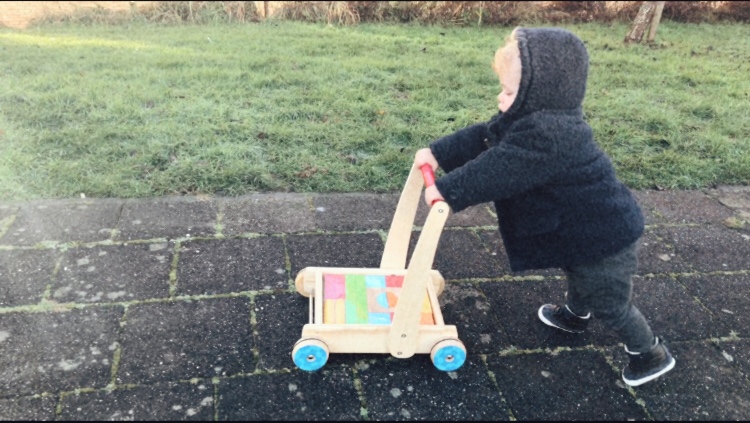 The sun came through at some point and then I decided to dress him and take his walker outside.