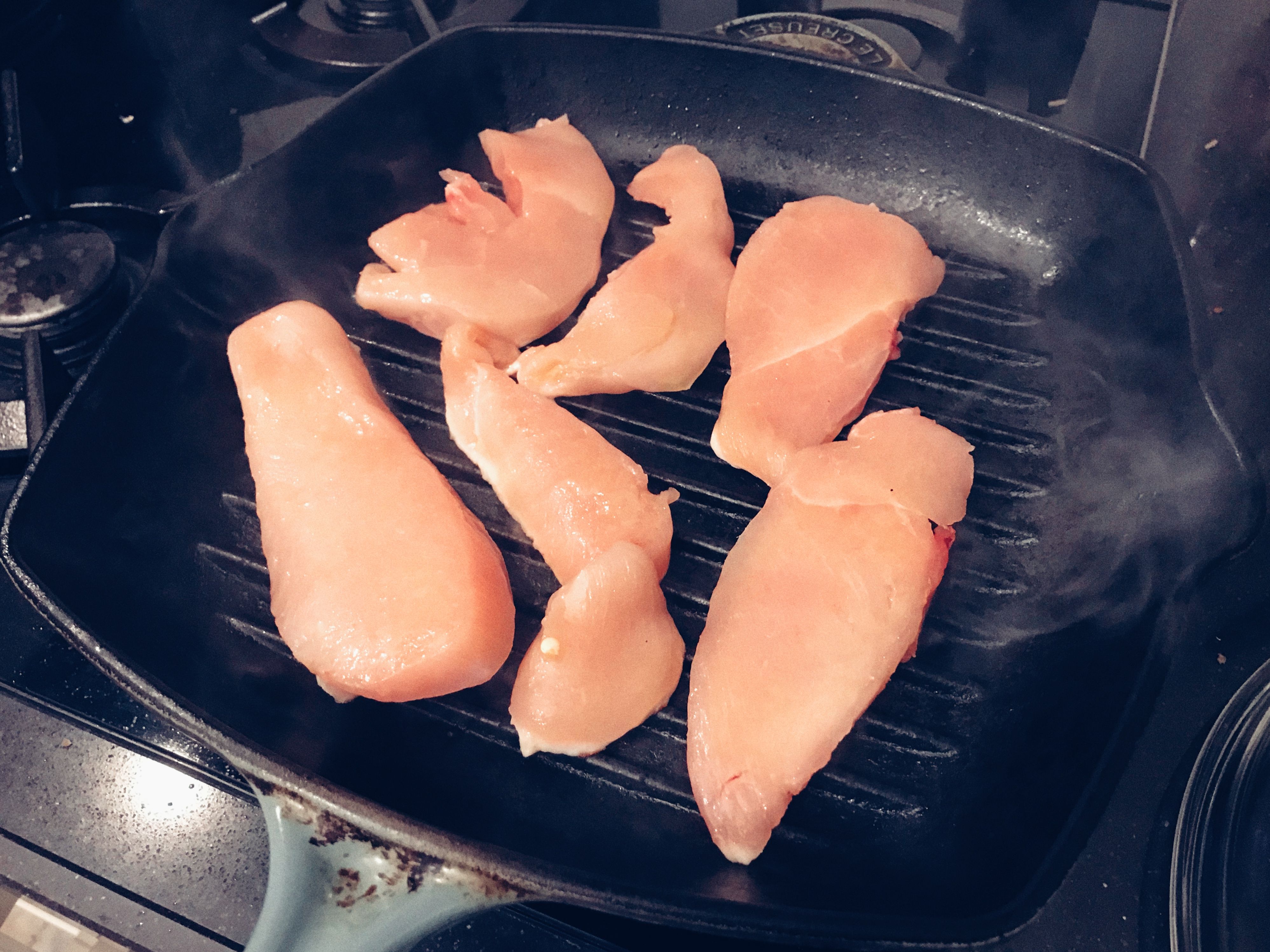 Time to grill the chicken! It needs about 3 minutes per side.