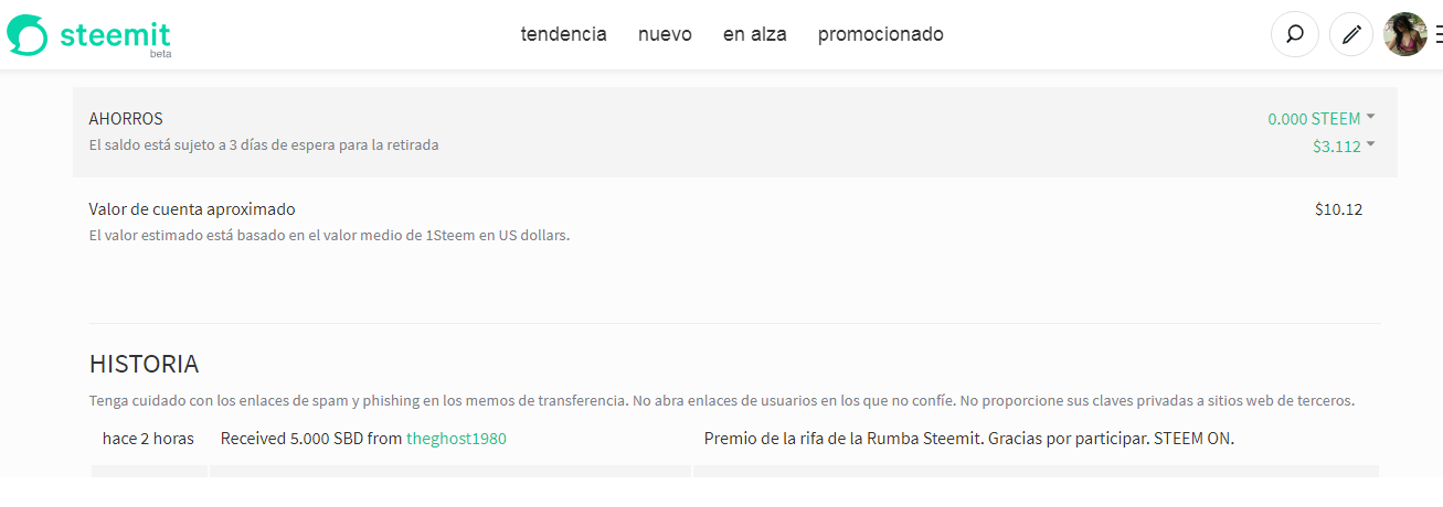 Pocos minutos después ya había recibido mi premio en SBD/STEEM