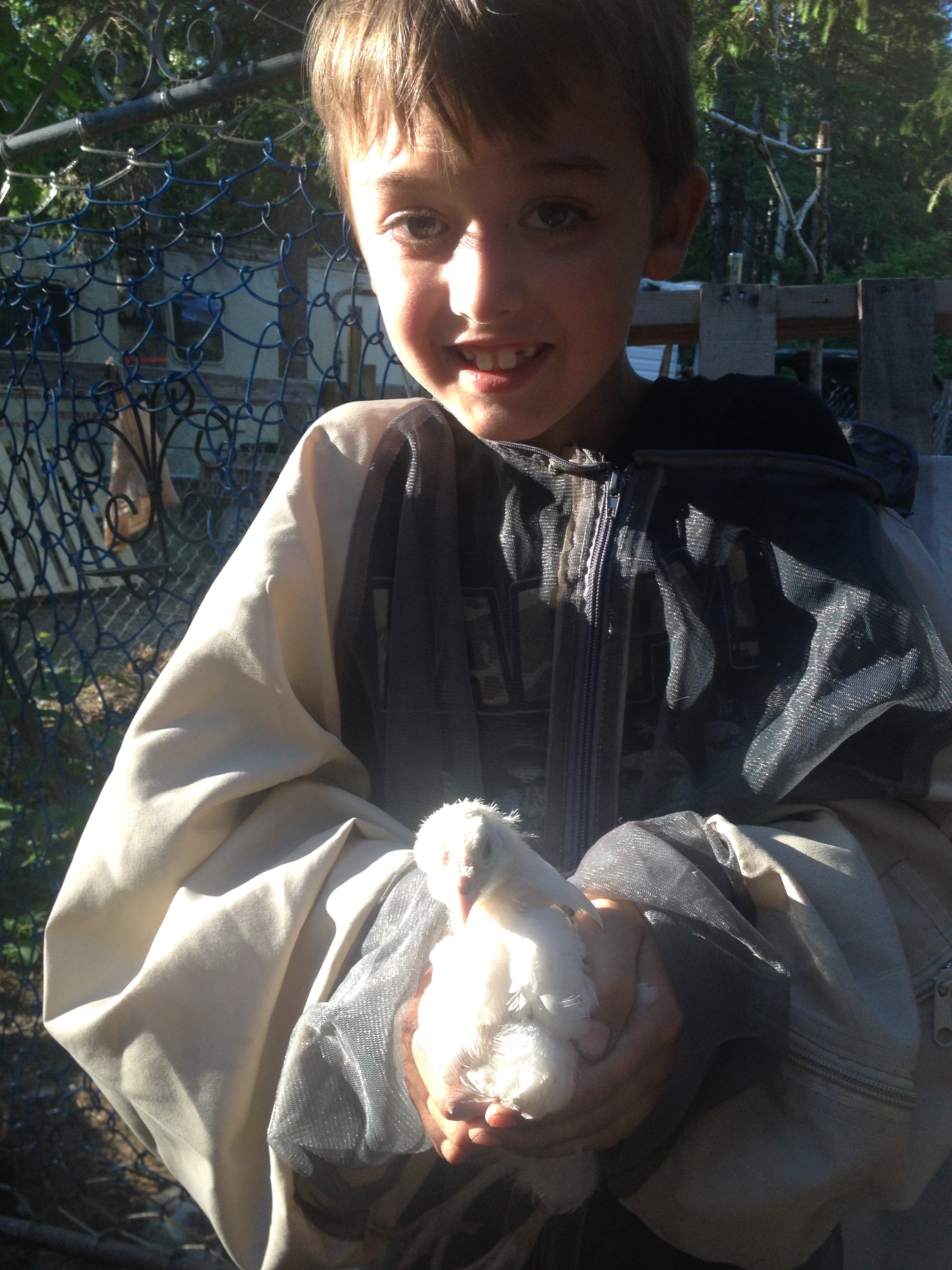 Quickly, his mood changed his eyes were brightened and a smile on his face and said, "Ya it is just a chip" and giggled a bit. Then he apologized to his 2 little sisters.
