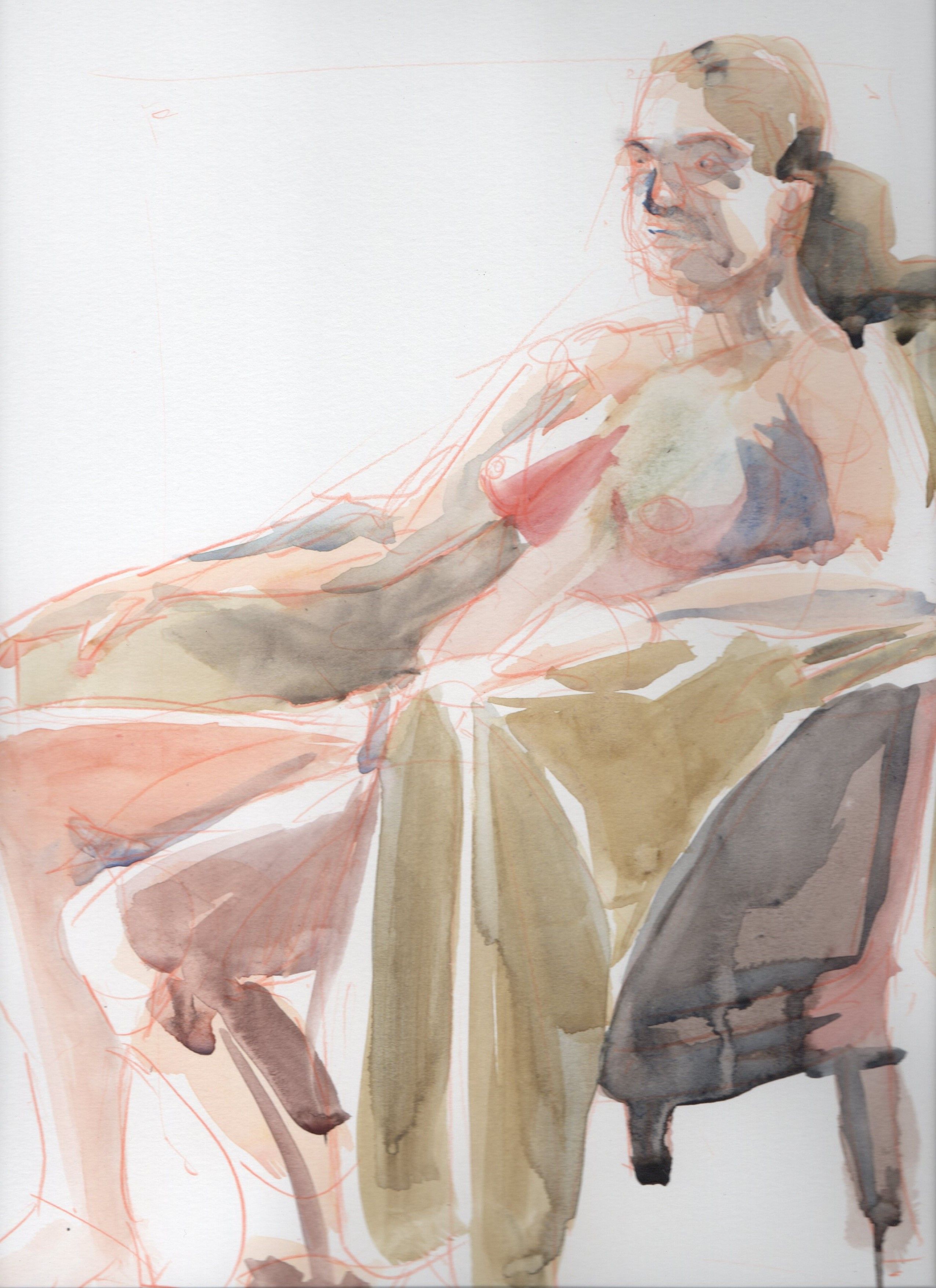 Thanks everyone for stopping by this week. I've been feeling a lot better about my watercolors on the figure this week. I think I've for the most part been able to get over the hump of going in to quickly and muddying up my colors. Some of the nice crisp edges on this one are really working. I've been meaning to do a few studies of zorn and sargent paintings to get a better feel for lost and found edges but I think it's also important to struggle a little bit first so that I can get to know my weaknesses.