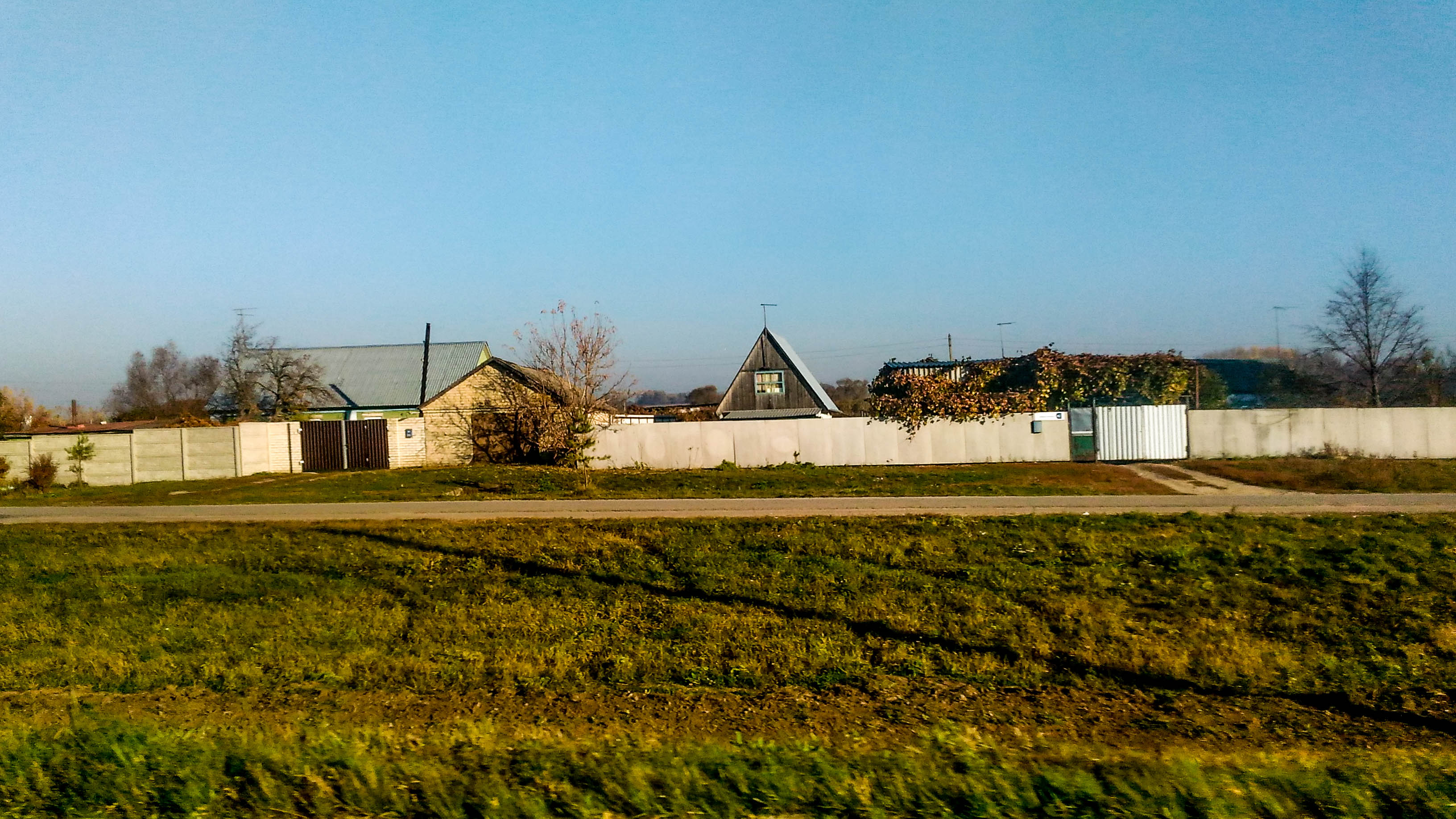 Russian village houses from the car window