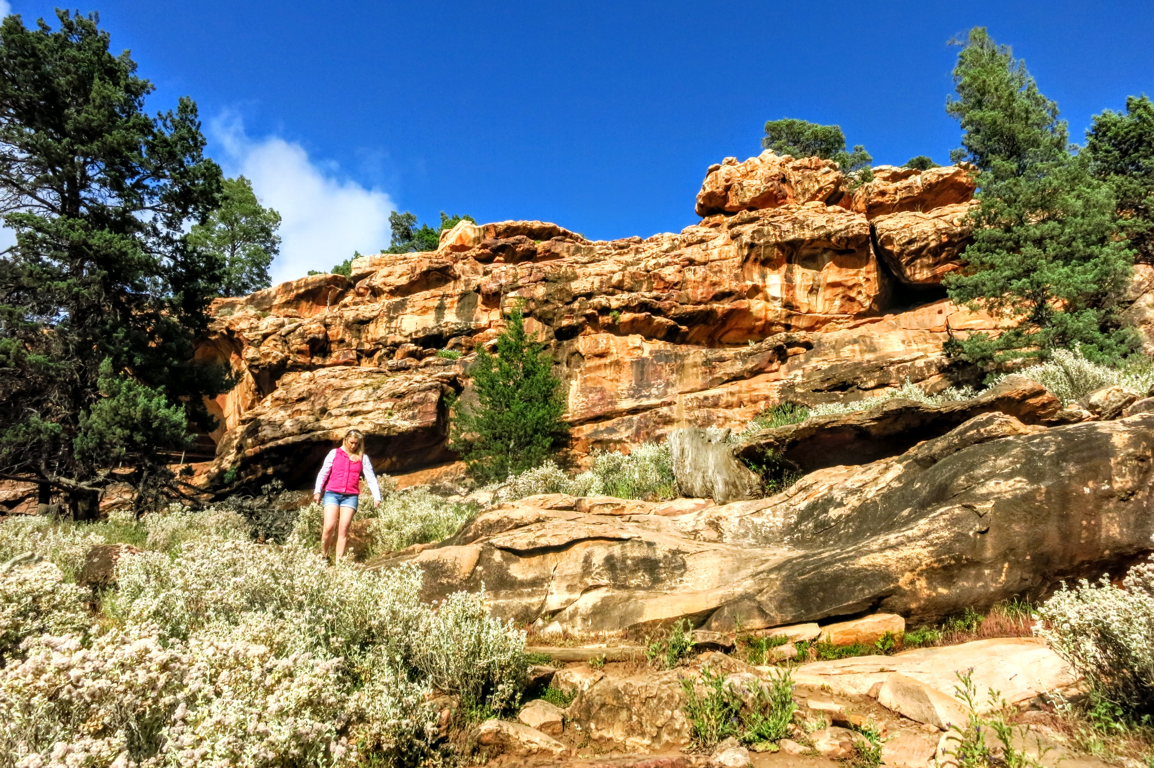 Halfway down we heard voices and before long came across another couple on their way up. We chatted a little and I warned them about a brown snake (will kill a person) I'd seen back up the trail and we went our separate ways, them up and us down.