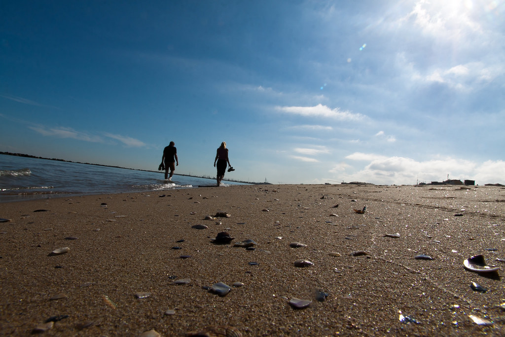 Couple walking by the sea