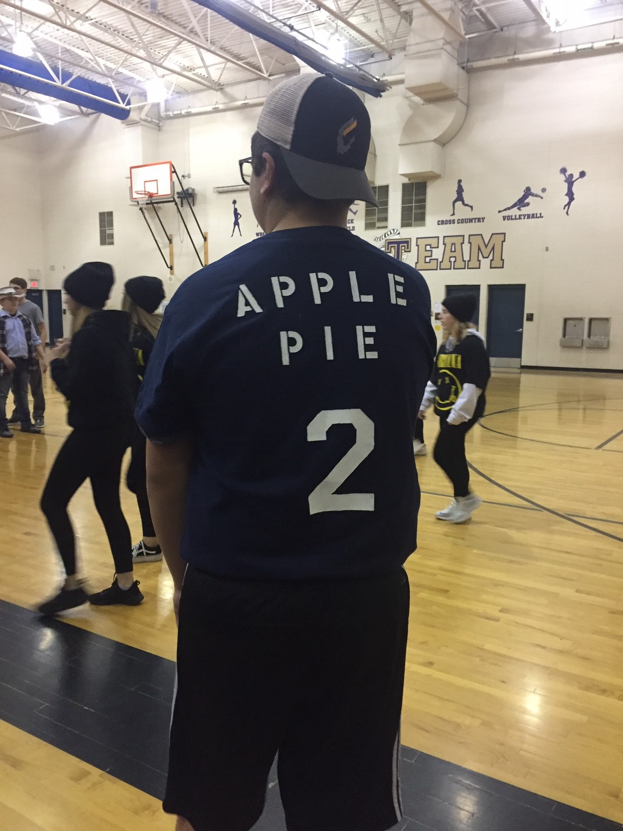 The match began with gusto, teams such as "The Ridiculous Six" and "Snoop Dodgey Dodge" took to the floor. I was really impressed that "The Ridiculous Six" played in full shirt tucker, cowboy attire, but it was "The Cluckers" team shirts that brought me the most mirth. On the front of the shirt was a giant picture of a hen, and above the hen it said "Guess What?" with an arrow pointing to the derriere of the lady bird. Gotta love middle schoolers.