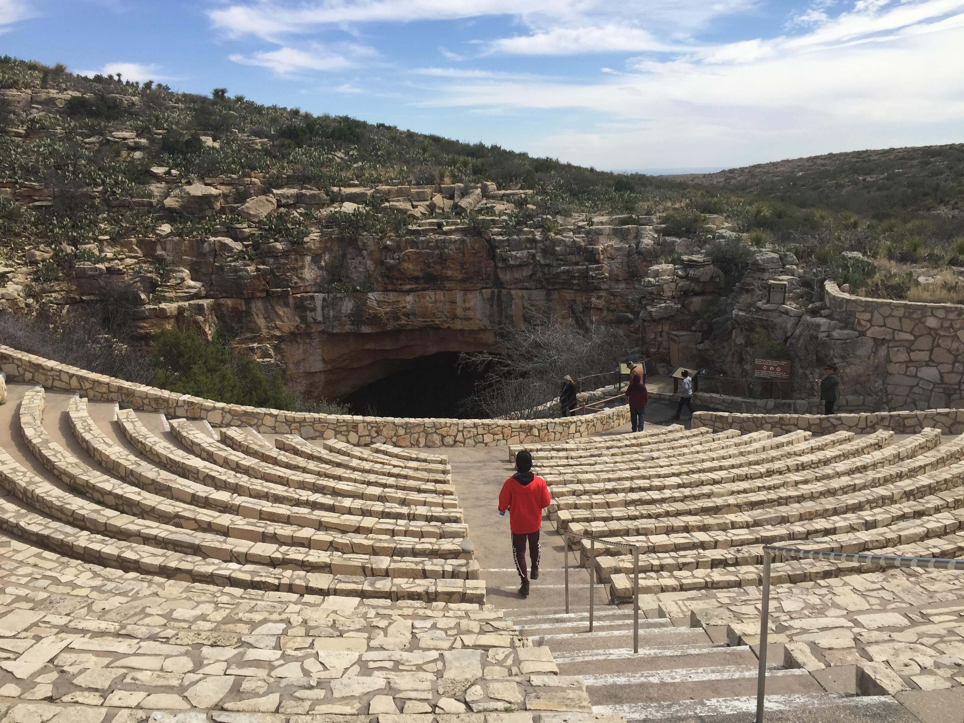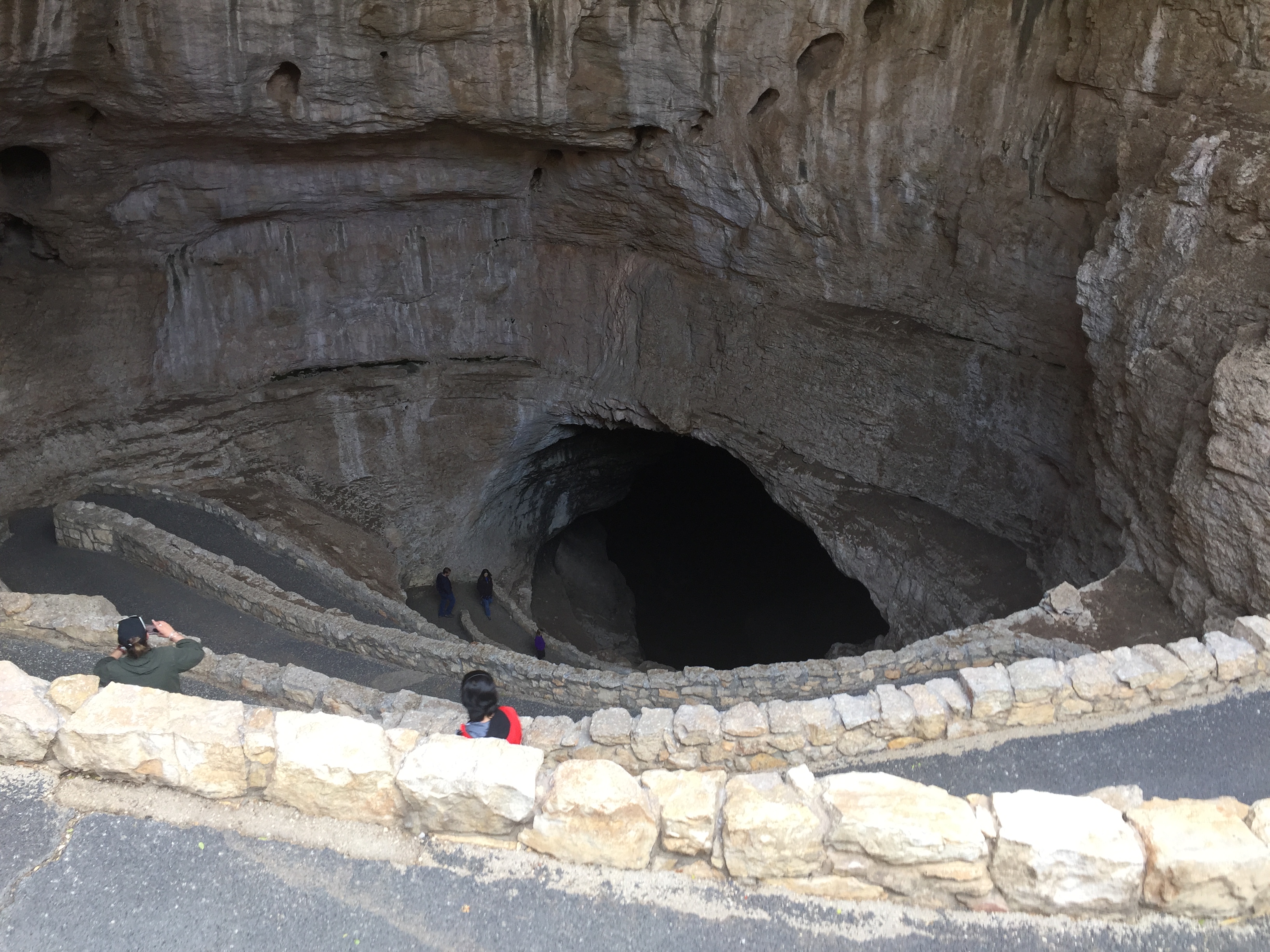 It takes at least and hour and a half to walk the paved trail down to The Big Room, and if you are able, I totally recommend the descent. As you walk along the path from the visitor center to the cavern entrance you spy this big gaping black maw of into the earth beckoning. Surrounding the entrance is an amphitheater that people can perch in for some bat watching, apparently there is quite a bat show during part of the year.