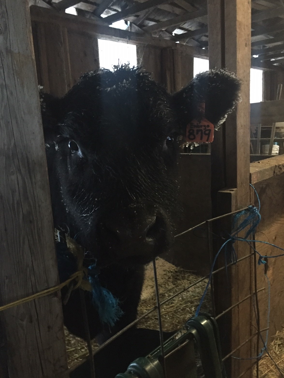 You see the show cattle are super spoiled. And addicts. Their crack is grain and they get heaps of it. It literally took me thirty seconds to get Uno back in his stall. I walked to the fifty gallon drum that holds his feed, got a scoop, and hollered, "Come and get it big U!"