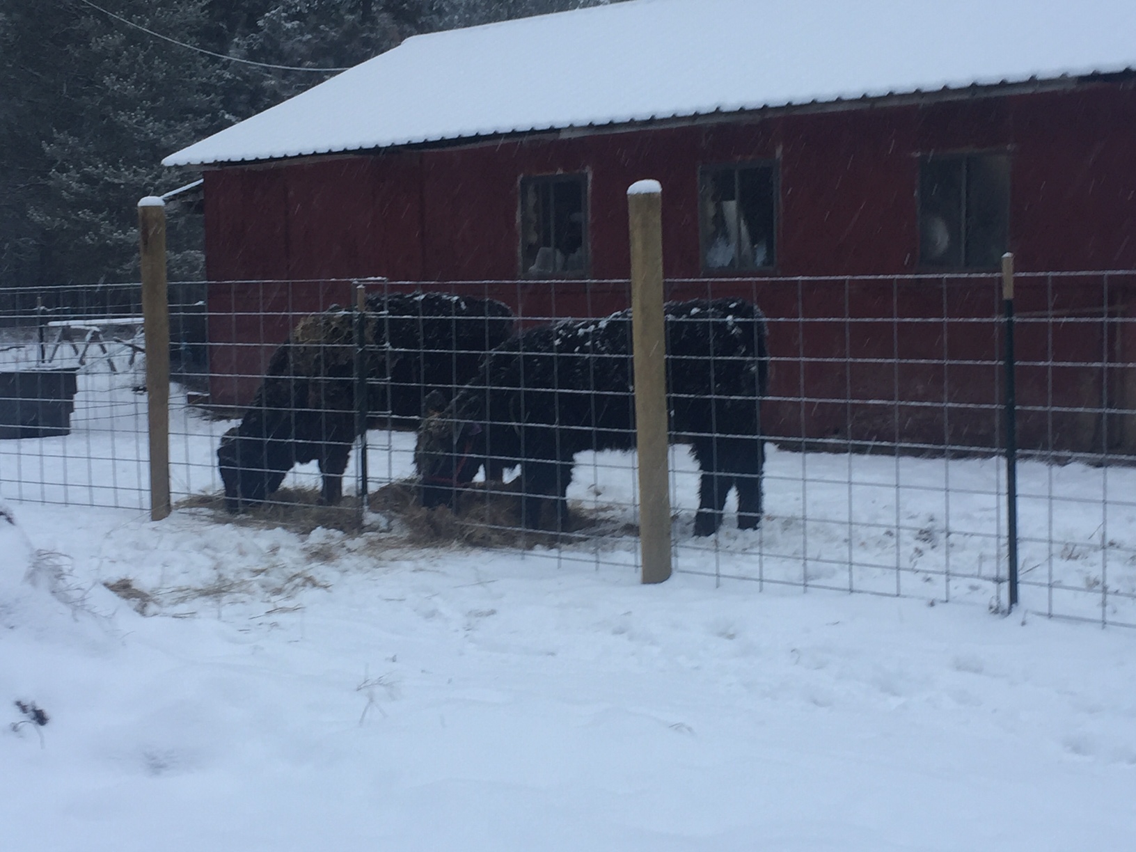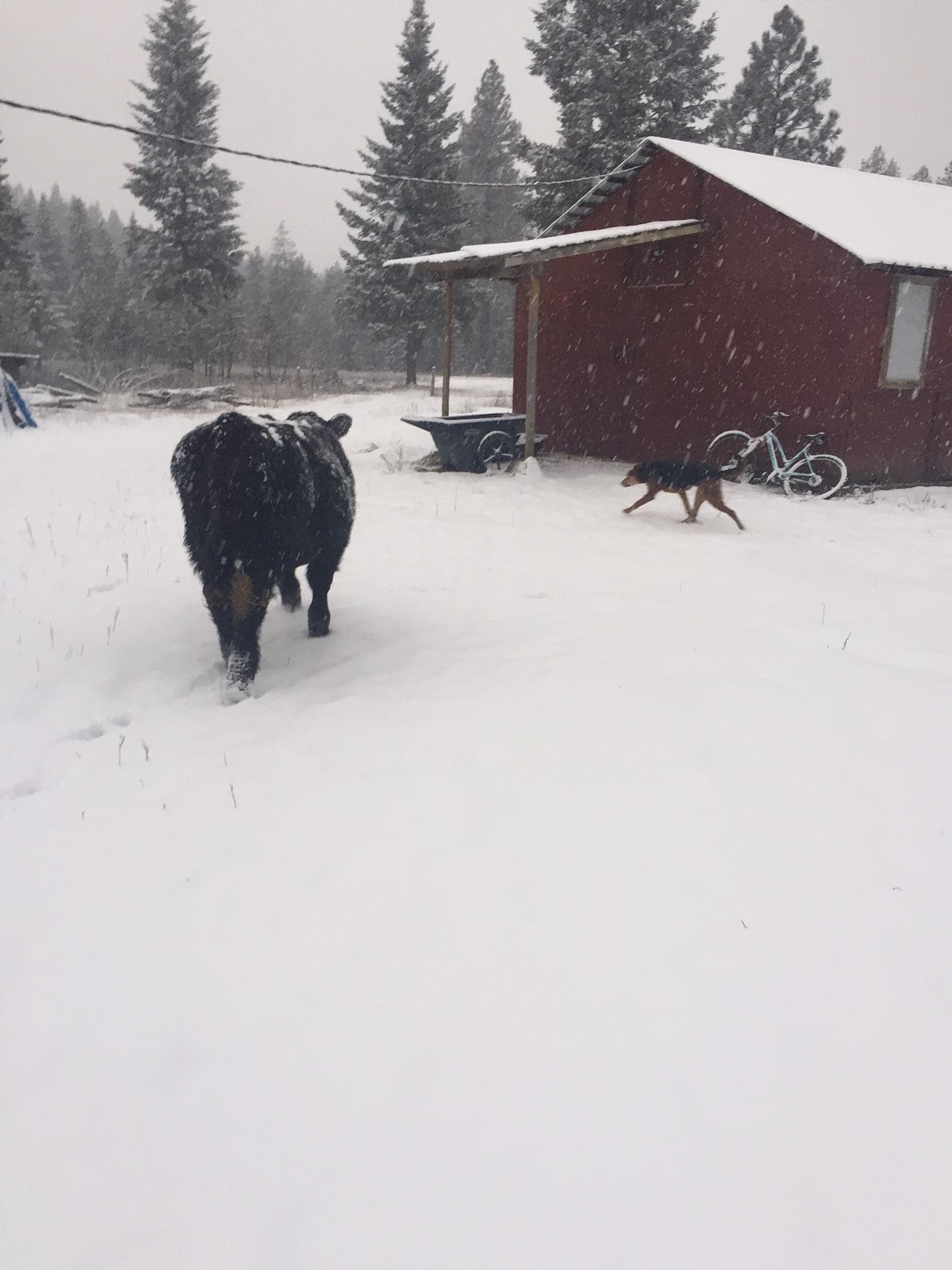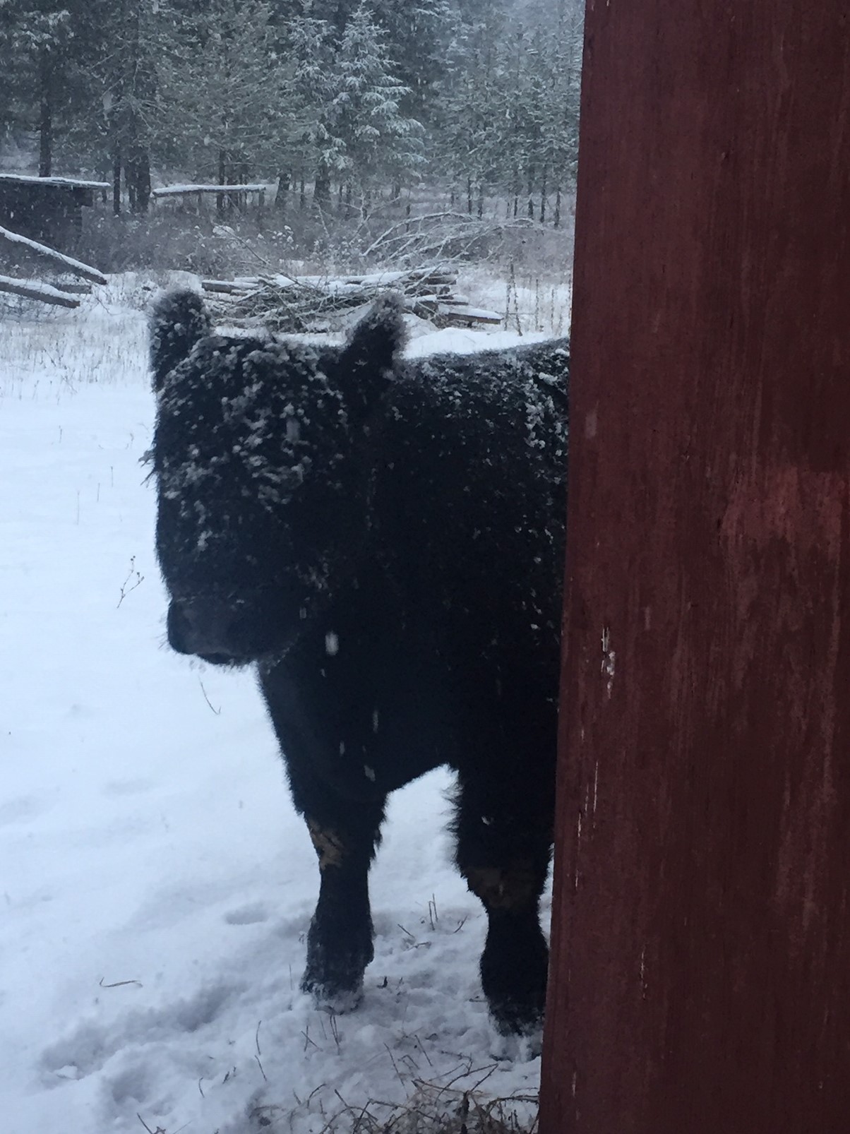 After barn chores were finished I stepped outside and enjoyed a moment in the quiet. The lack of sound when snow is falling is one of my favorite life moments. It's a noisy silence in a way, Almost like someone is sifting colloidal oatmeal over my patch of Earth to make it look all nice and clean for just a moment or two. Until Uno kicks the wall and leaves a smear of steer stuff or Lani blasts by me leaving a plethora of prints in her wake.