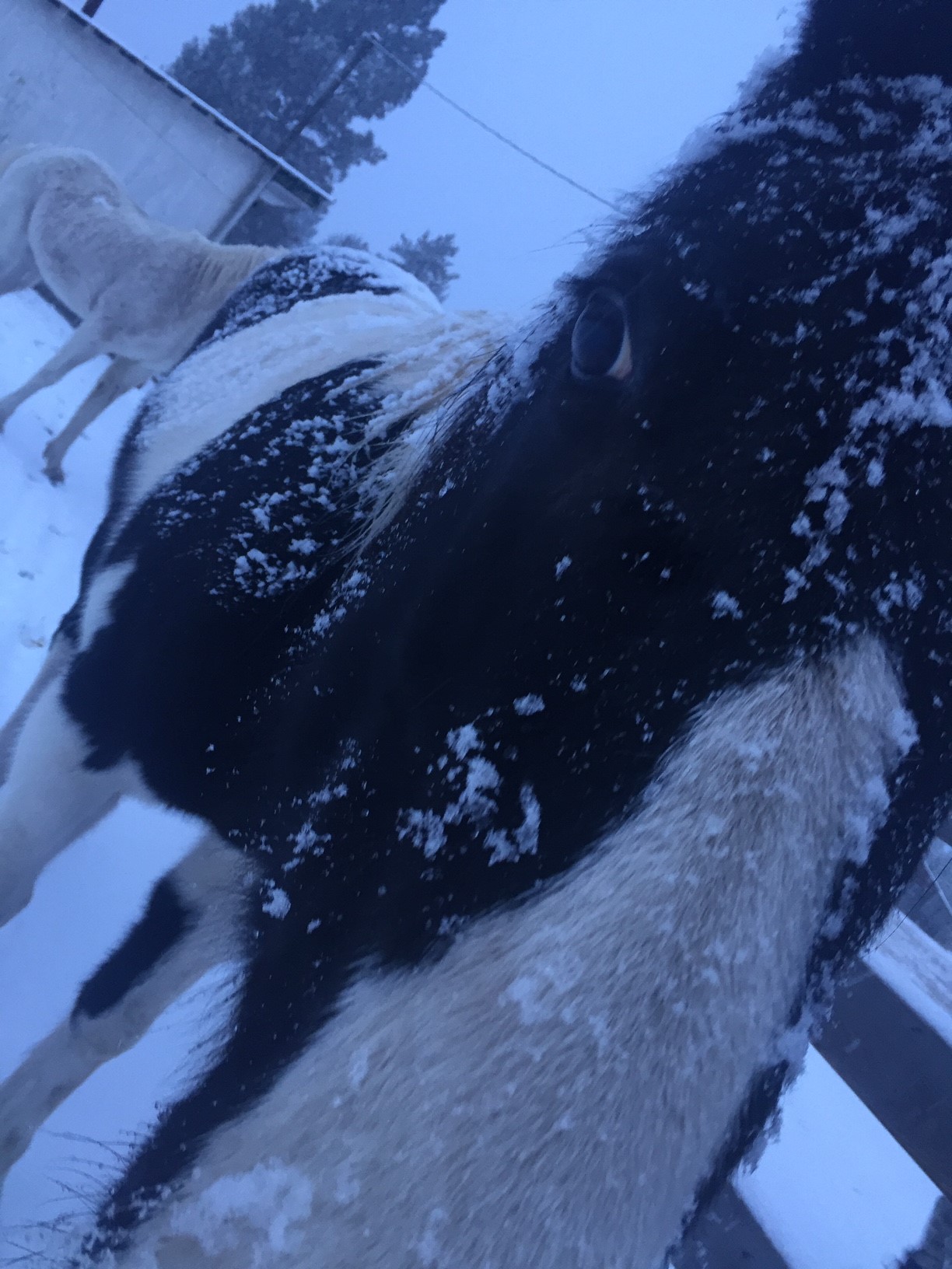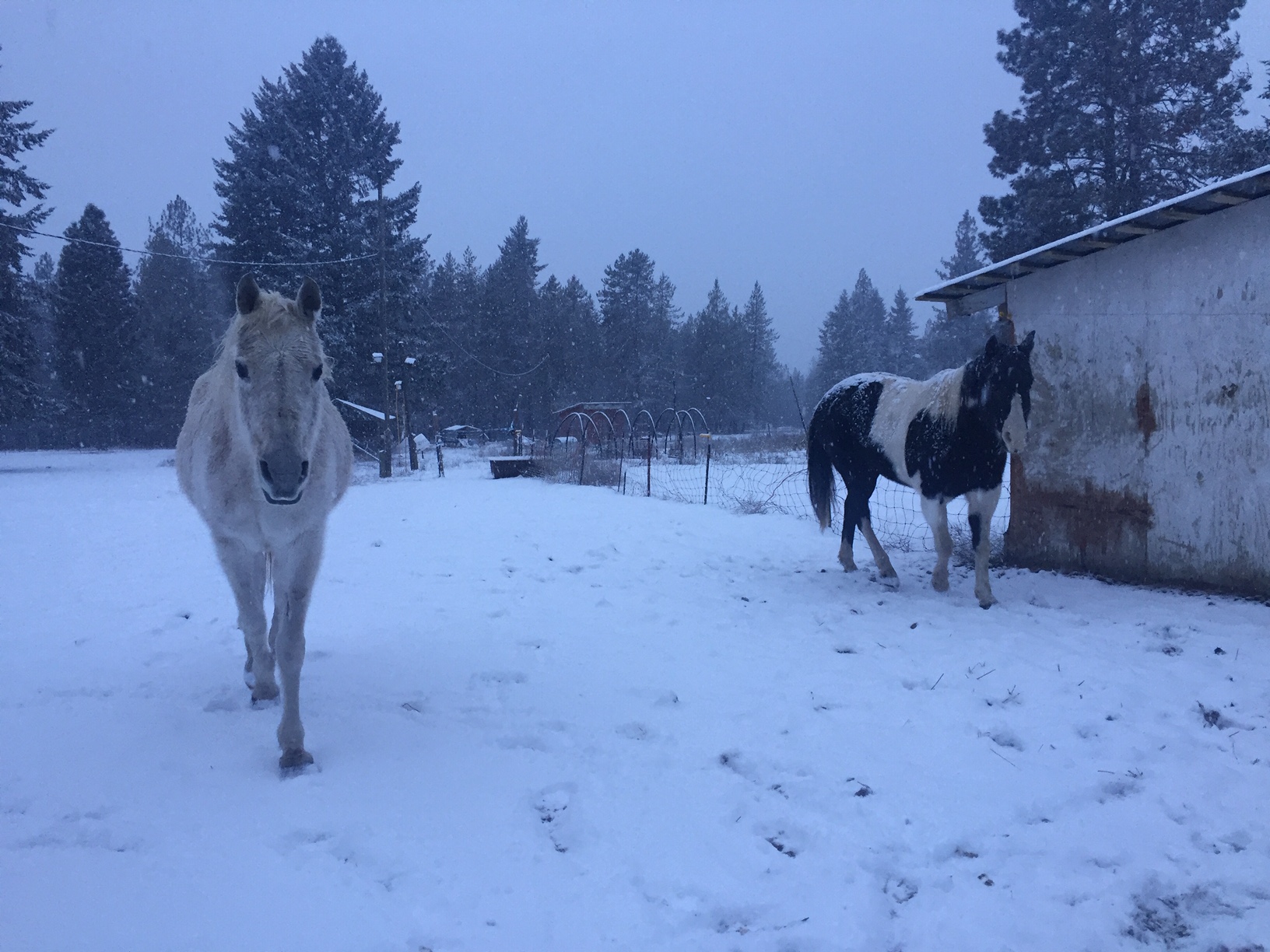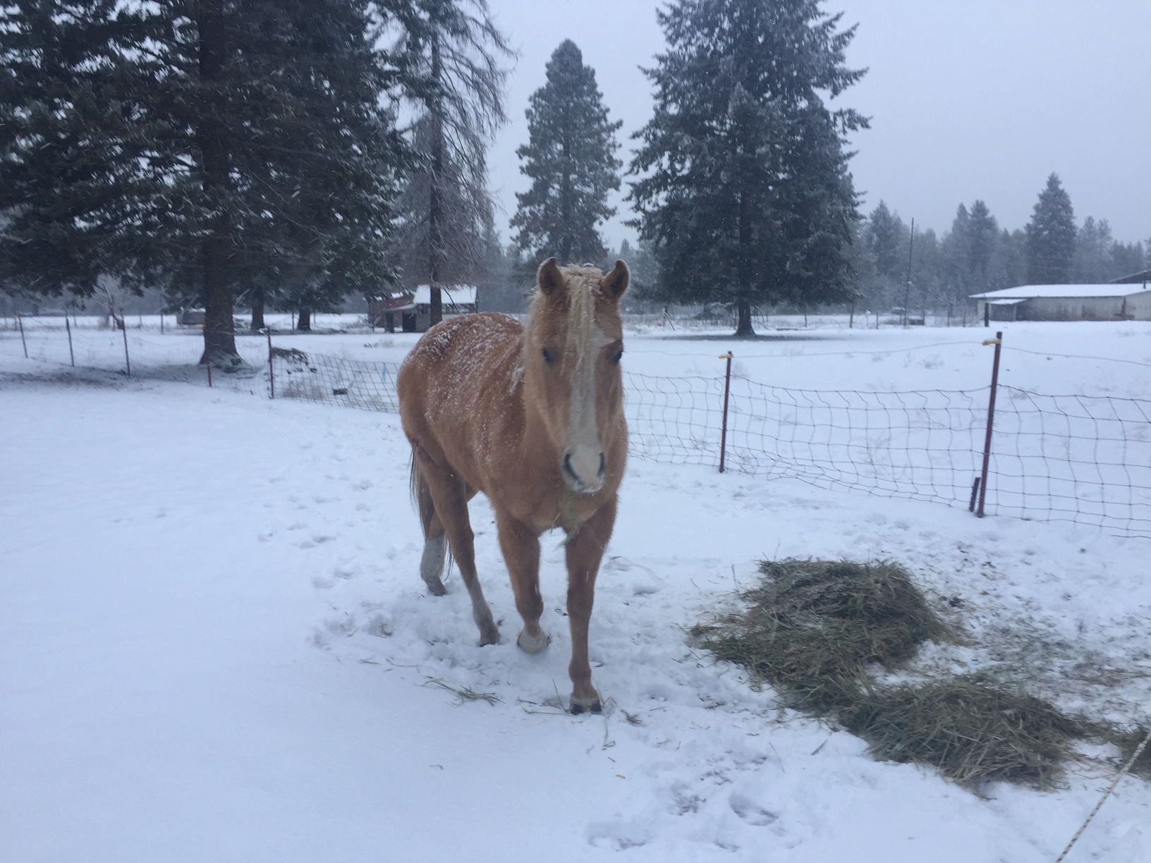 Once the two mares are happily snacking on alfalfa and grass hay, I move down the fence line with a big armload of more hay for my pony, Kula. My big palomino Quarterhorse always has a whinny for me, as he is my bestest bud. We both kinda don't like winter too much sometimes as we tend to have a lot of ice, and since I am too cheap to pay for boron shoes, we don't do much interacting beyond feeding time for a few months. Ugh.