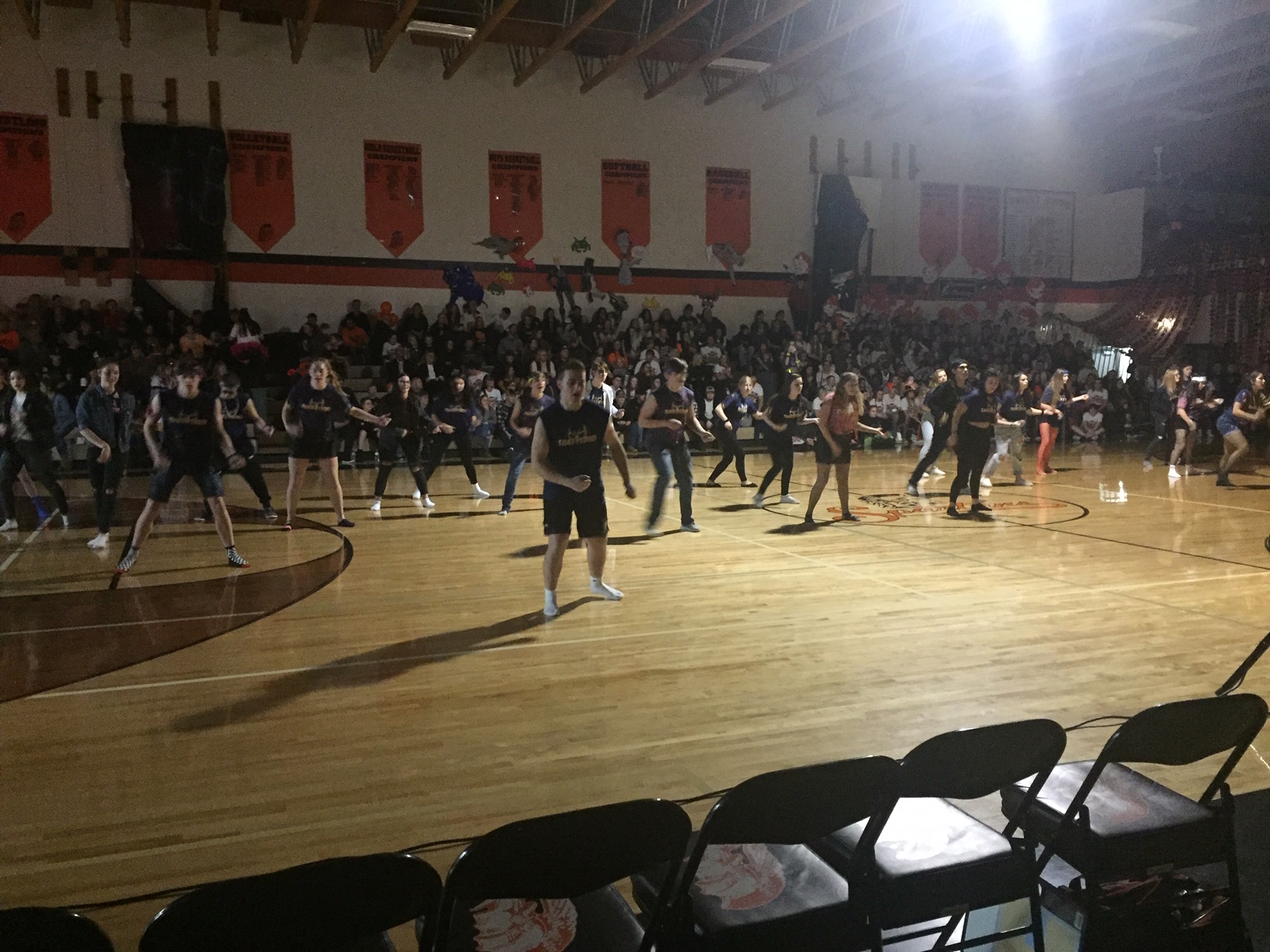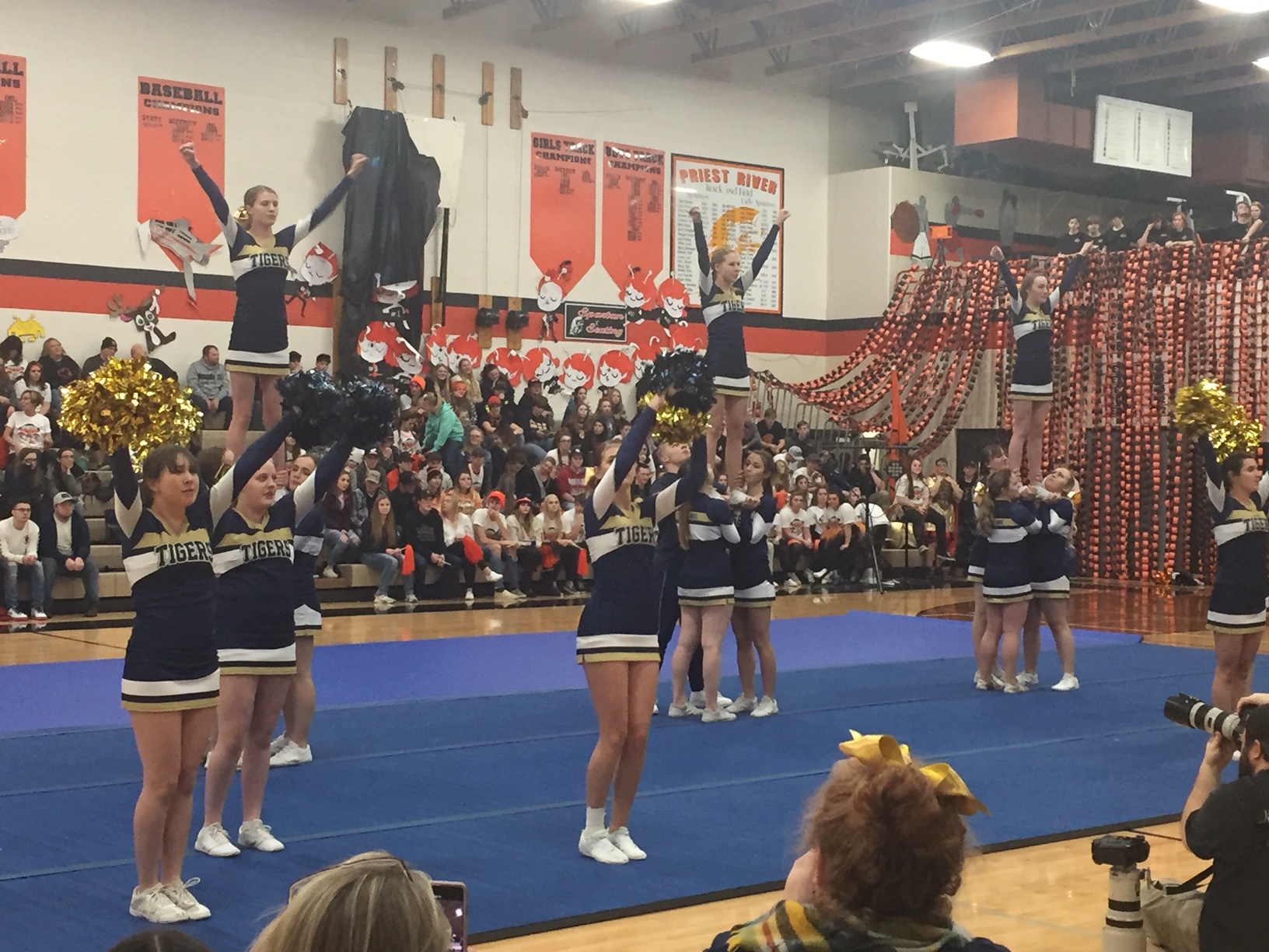 Priest River went hard too, and I was equally impressed with their black light, glow in the dark, R&B extravaganza! All of the kids put so much work into their routines, it was something. I also was pretty amused because the only emergency of the night happened right before their routine, over the loud speaker came these words, "Megan M, can you please bring your iPhone accessory cord to mid court, Megan M!" The urgency in the announcer's voice slayed me, as I was sitting close to mid court and saw that Megan's iPhone had the music on it for their routine. Apparently her phone needed an emergency charge, ha ha!