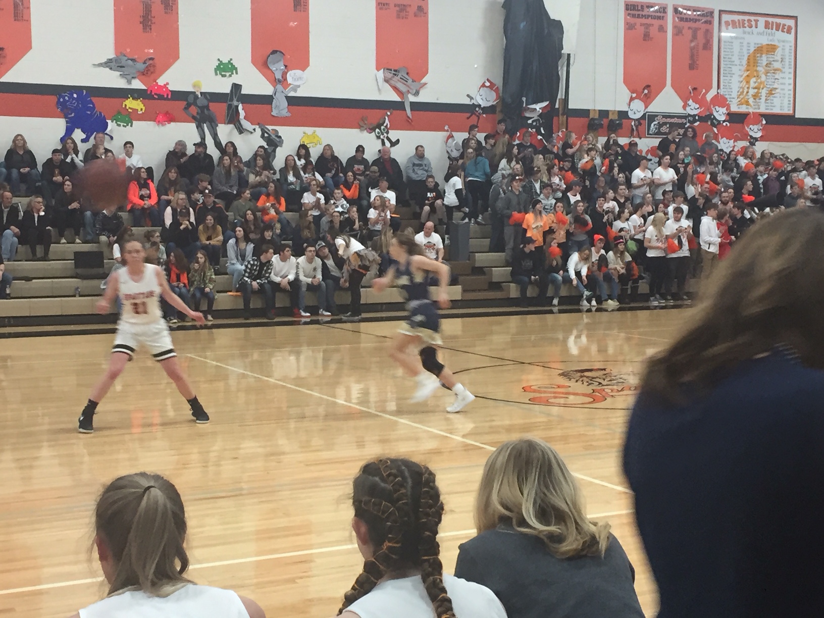 Then the girl's game commenced. Our Lady Tigers are just spectacular! They have the greatest coaching staff ever, and our head coach's philosophy of team was easy to spot. There are no bench riders on our girl's basketball team, everyone plays and it's pretty exciting watching the girls dominate the way that they do. They ended up winning the game 66-11. Honestly, I felt a little bad for the Priest River girls. I have played on teams that have won like that and have been beaten like that, and I know how disheartening it can feel. They were good sports through the whole thing though, I was impressed.