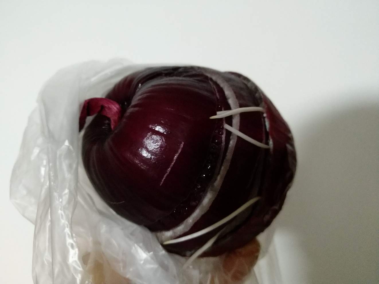 嗯,大概两周前为了煎鸡蛋就买了个洋葱切洋葱卷,然后煎鸡蛋。之后呢,就把用剩下的半个洋葱放到了冰箱里,今天打开一看,洋葱竟然在切成的位置长出了根系,你没有见过吗?反正我是第一次见,实在是,神奇