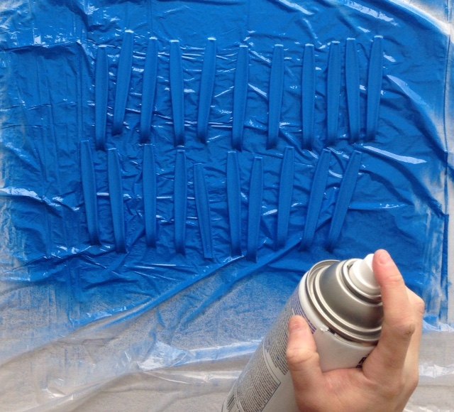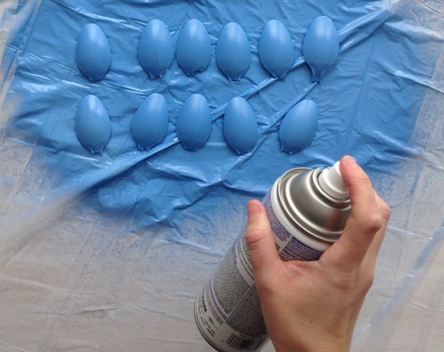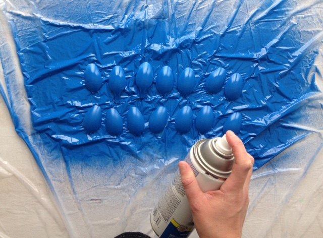 I painted my handles the darker shade of blue. The handles will make the spiky segment of the pineapple.