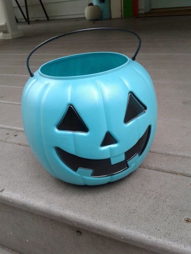 I've been putting these on my lights for a few years, but at our new beach house a bright orange pumpkin pail didn't go with the rest of my fall colors so when I saw those pumpkin pails in a variety of colors and teal (what I decorate a lot with around here) I was thrilled and bought a few.