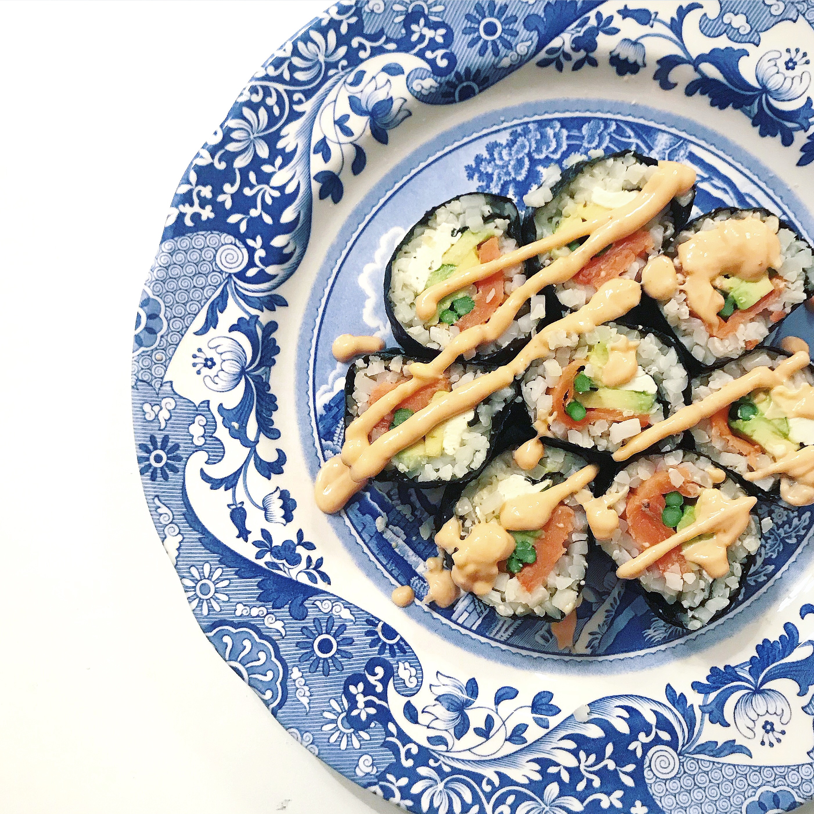 Instead of cauliflower rice, you can substitute it for brown rice or no rice at all. My daughter wanted no rice. She also dipped it in low-sodium, gluten-free soy sauce instead of the high-fat spicy mayo sauce.