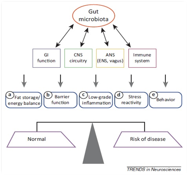 Based on recent findings, we believe that intestinal microbiota is an important player in influencing the brain, including homeostasis, anxiety, and mood disorders, which can affect disease risk.