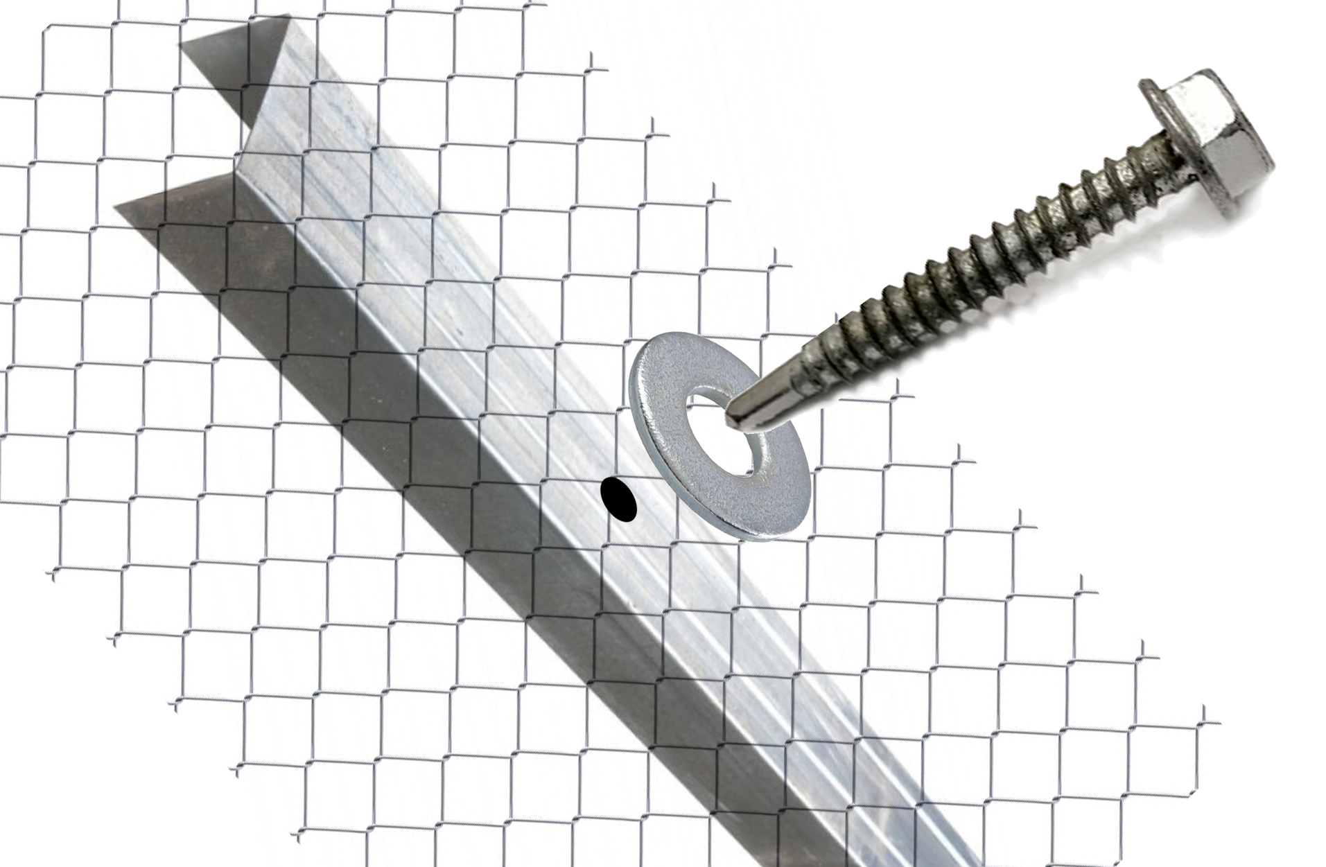 The important point here is the use of metal washers. Since the net is basically wider than the screw head, a washer is indispensable. It should also be noted that the hole of the washer should be smaller than the head, so that it does not fall down, and presses the grid.