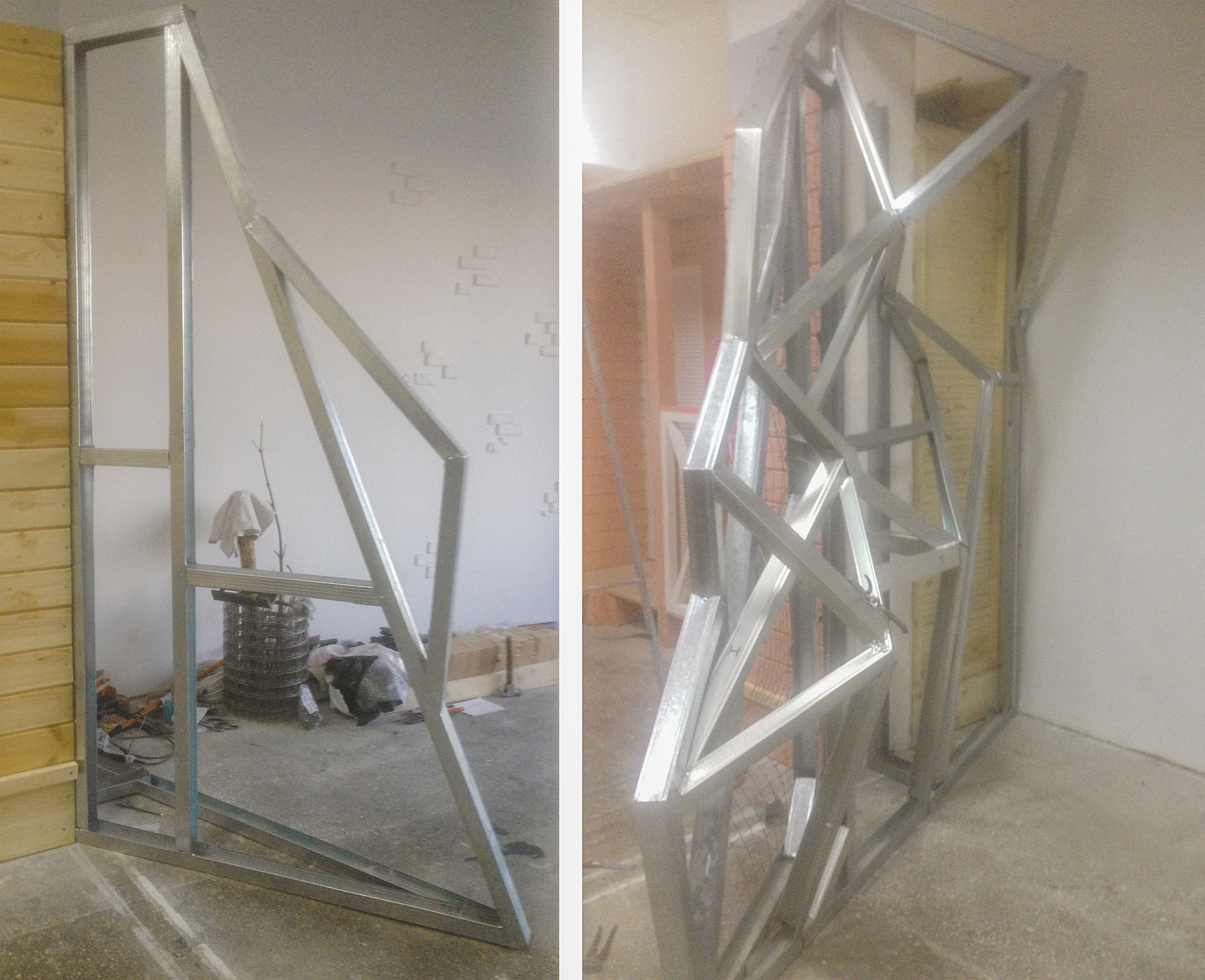 When the frame is ready, we need to sheathe it with a fine metal mesh. This is necessary in order to soften the shape of the structure for the further imposition of facing materials.