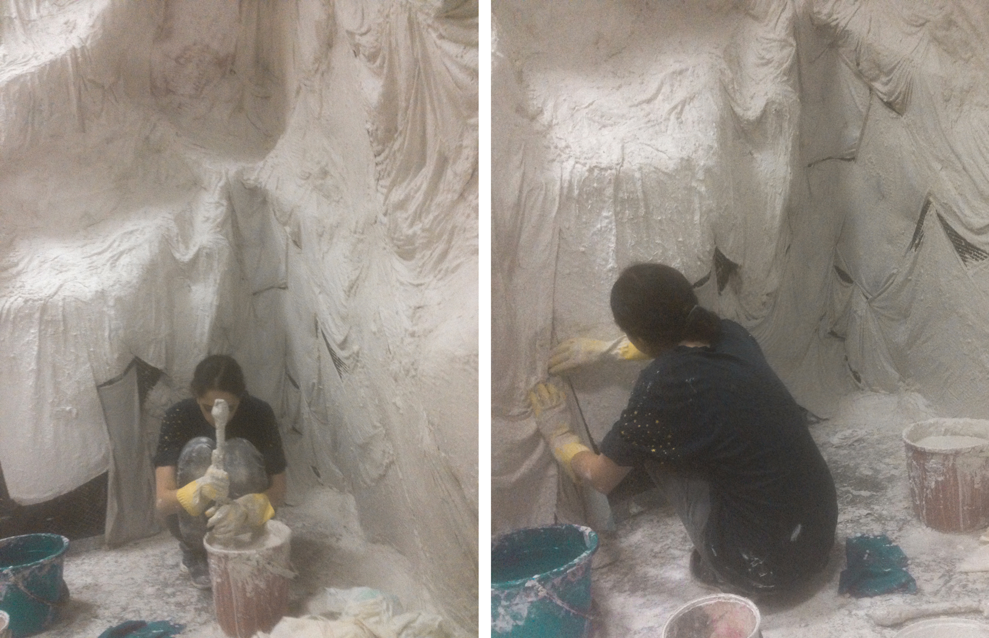 While the mass is liquid, we wet it in pre-cooked small pieces of cloth. Approximately 20-30cm wide and 50cm long. Lightly squeeze and immediately put them on all areas from top to bottom. When the mass begins to thicken, we cover it with fabric on the structure for durability. We do this until everything is covered by them. Next, repeat the process for at least three layers.